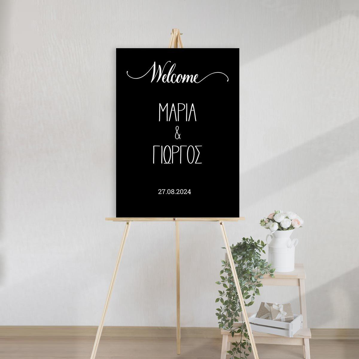 Πίνακας Plexiglas μαύρο, καλωσόρισμα γάμου