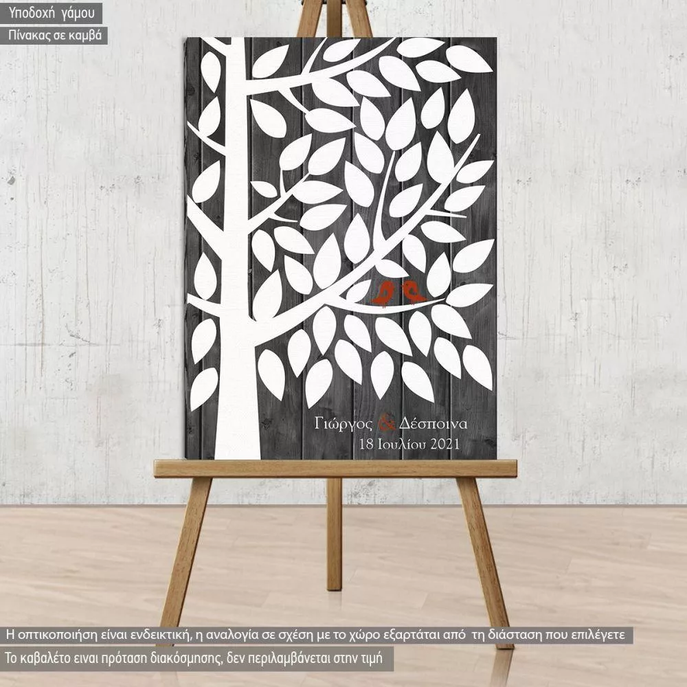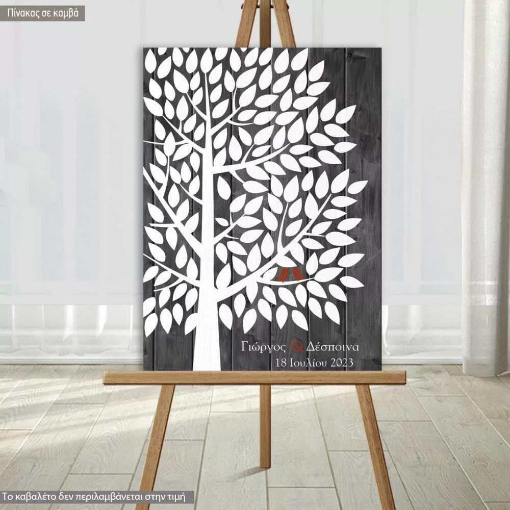 Πίνακας σε καμβά Βιβλίο ευχών με δέντρο, White leaves simple tree