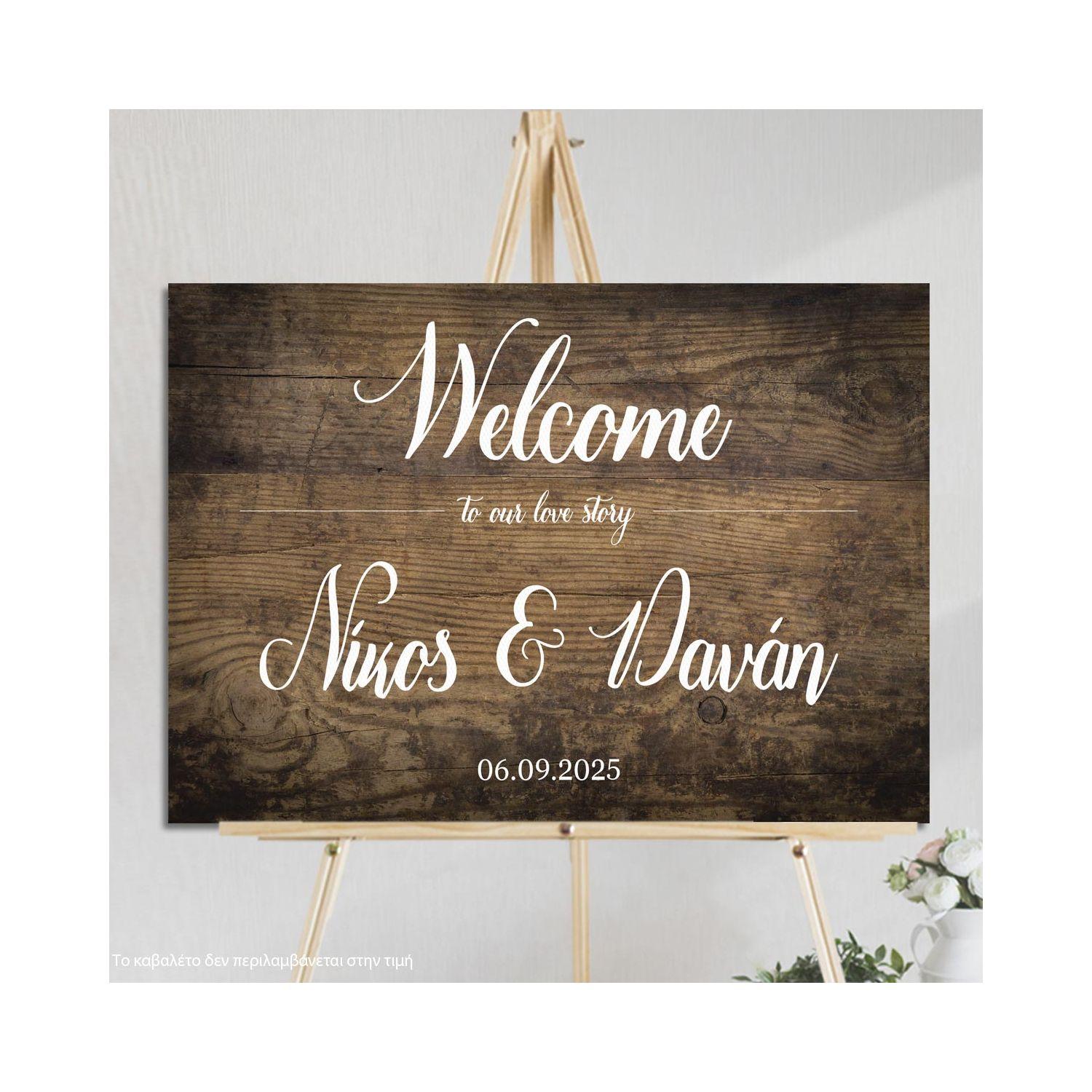 Ξύλινη πινακίδα Καλωσόρισμα γάμου, Welcome to our love story