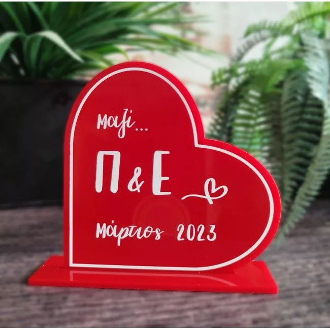 Προσωποποιημένο δωράκι για τον Άγιο Βαλεντίνο, Κόκκινη plexiglass καρδιά με αρχικά και ημερομηνία