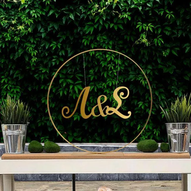 Αψίδα μεταλλική γάμου με αρχικά ζευγαριού χρυσό plexiglass