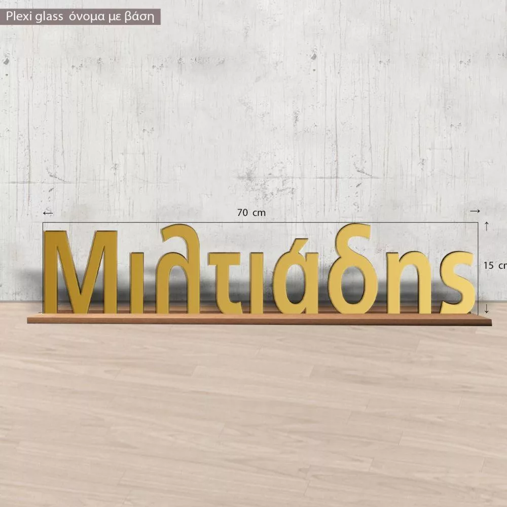 Plexiglas Χρυσά γράμματα με ξύλινη βάση