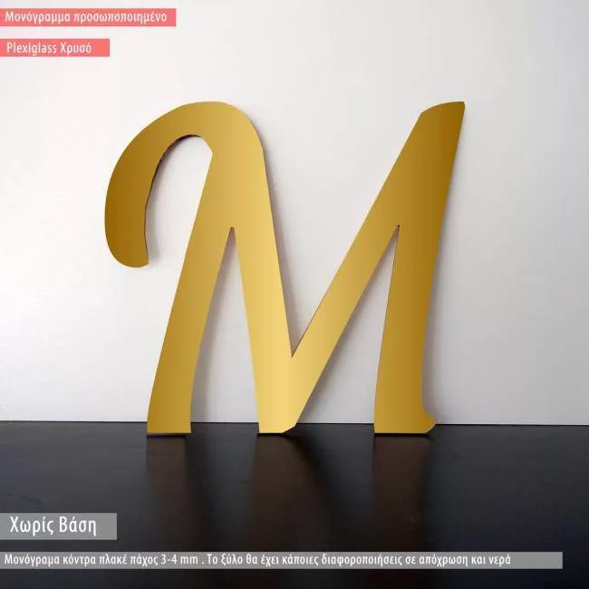 Μονόγραμμα από χρυσό plexiglass τέλεια κομμένο με laser