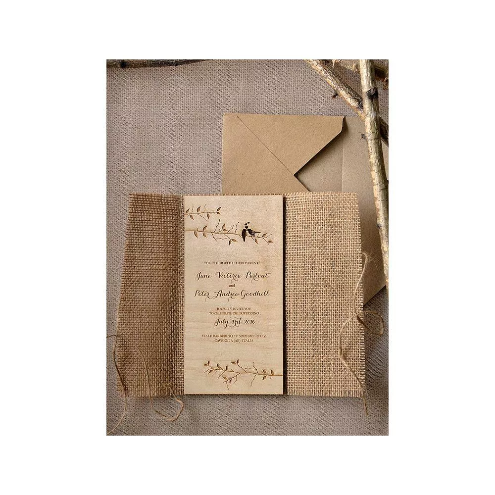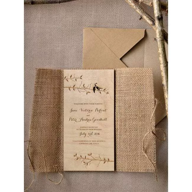 Ξύλινο προσκλητήριο γάμου , χαραγμένο με laser