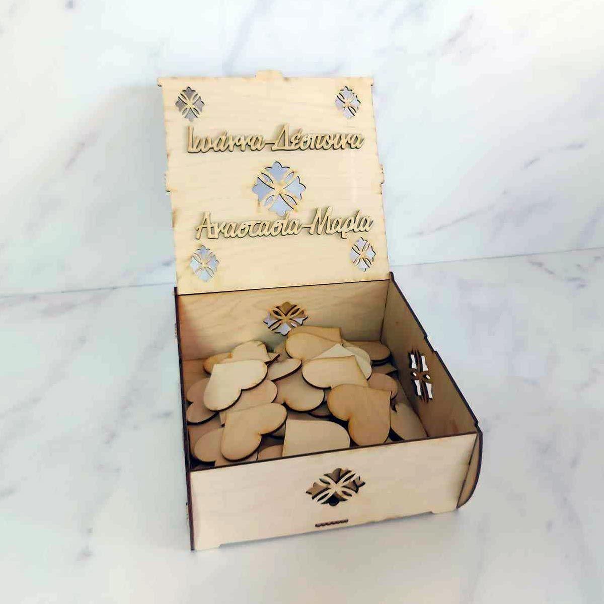 Ξύλινο κουτί με χαραγμένα ονόματα