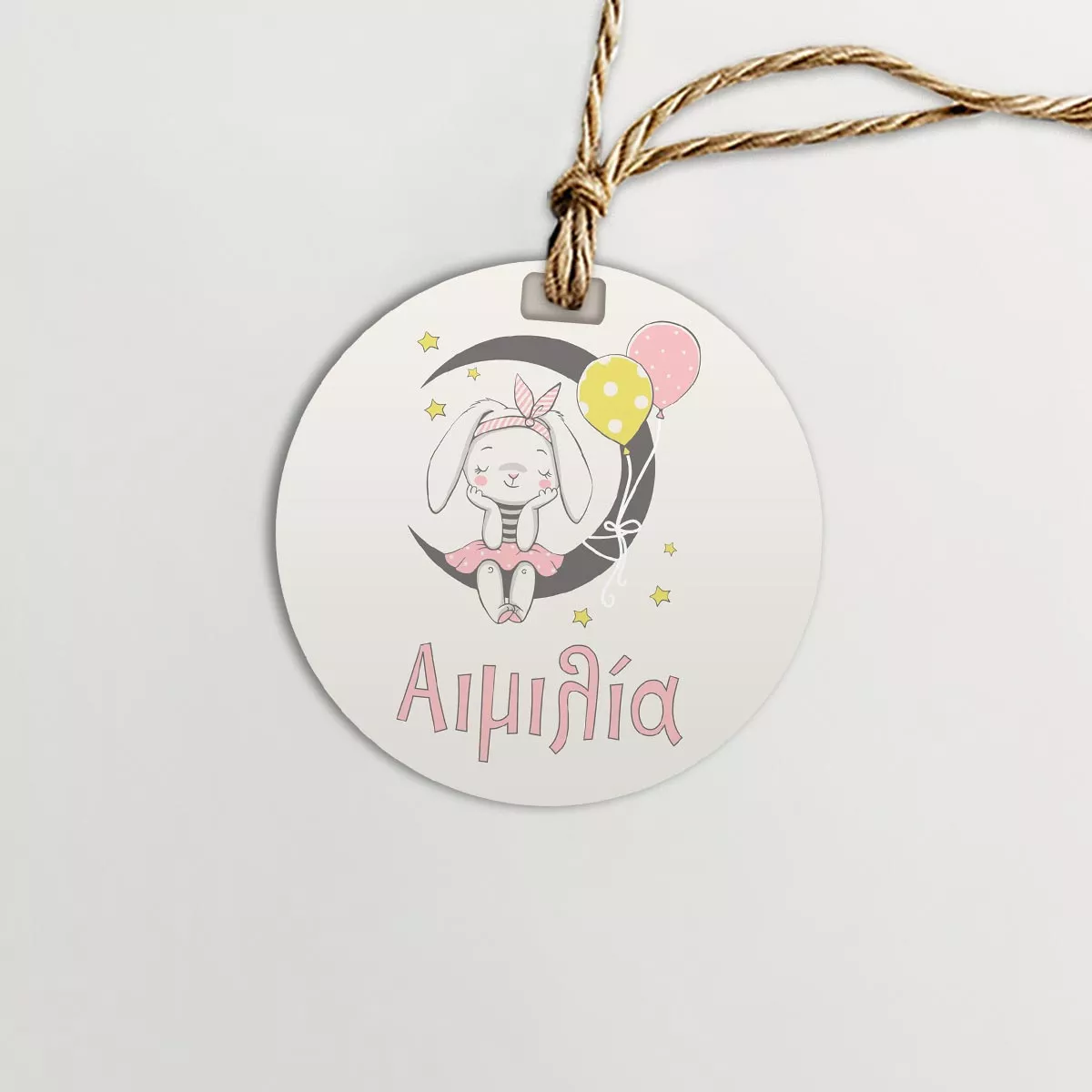Καρτελάκια ευχαριστήρια βάπτισης με το γλυκό ονειροπόλο λαγουδάκι στη σελήνη, ιδανικά για να δώσετε μια ξεχωριστή πινελιά στις μπομπονιέρες σας.