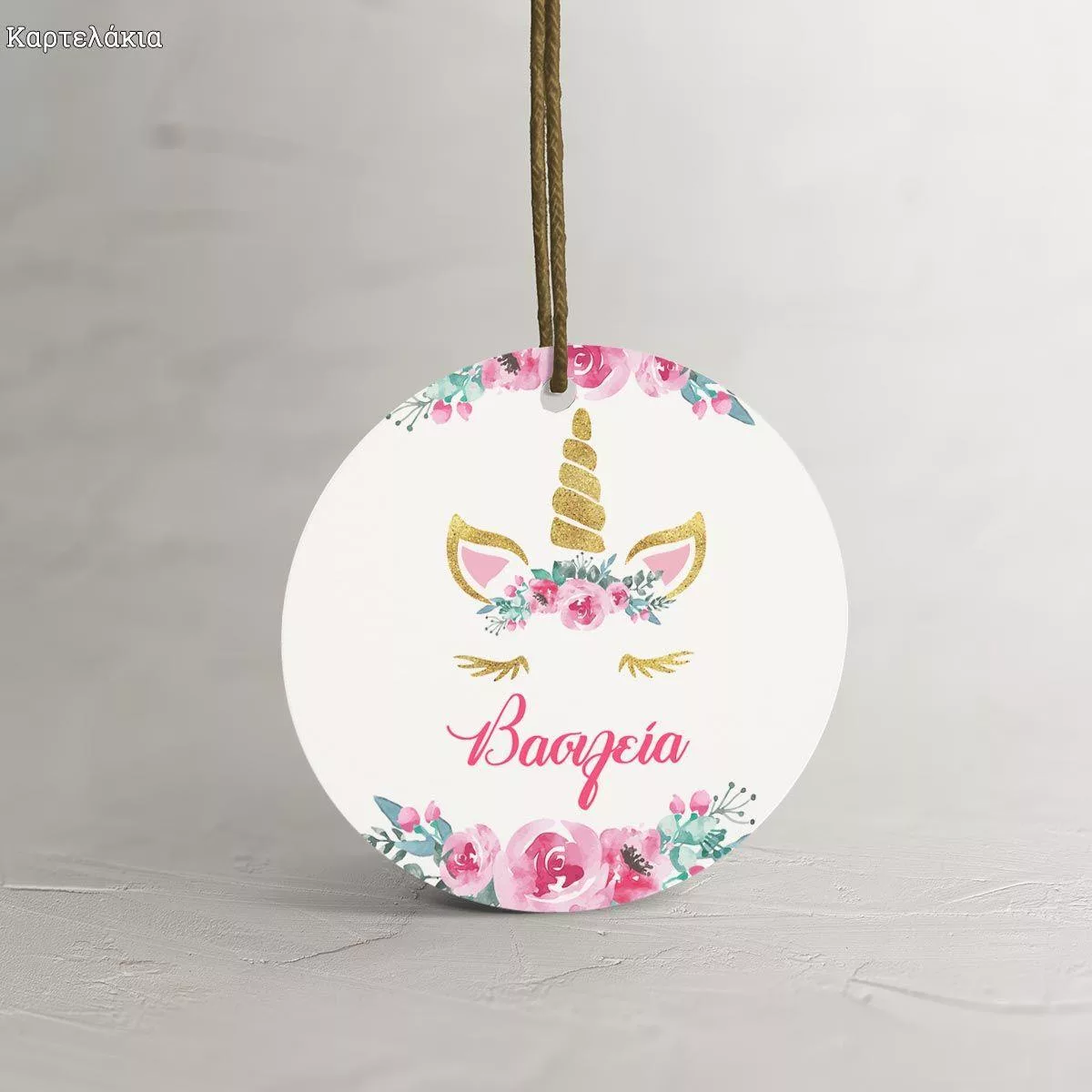 Καρτελάκια ευχαριστήρια, Μονόκερος με ζωγραφιστά λουλούδια