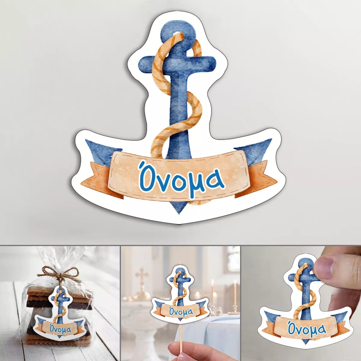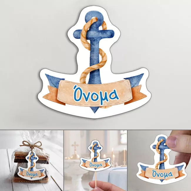 Προσωποποιημένα καρτελάκια βάπτισης με κοπτικό σχέδιο άγκυρας και το όνομα της επιλογής σας.