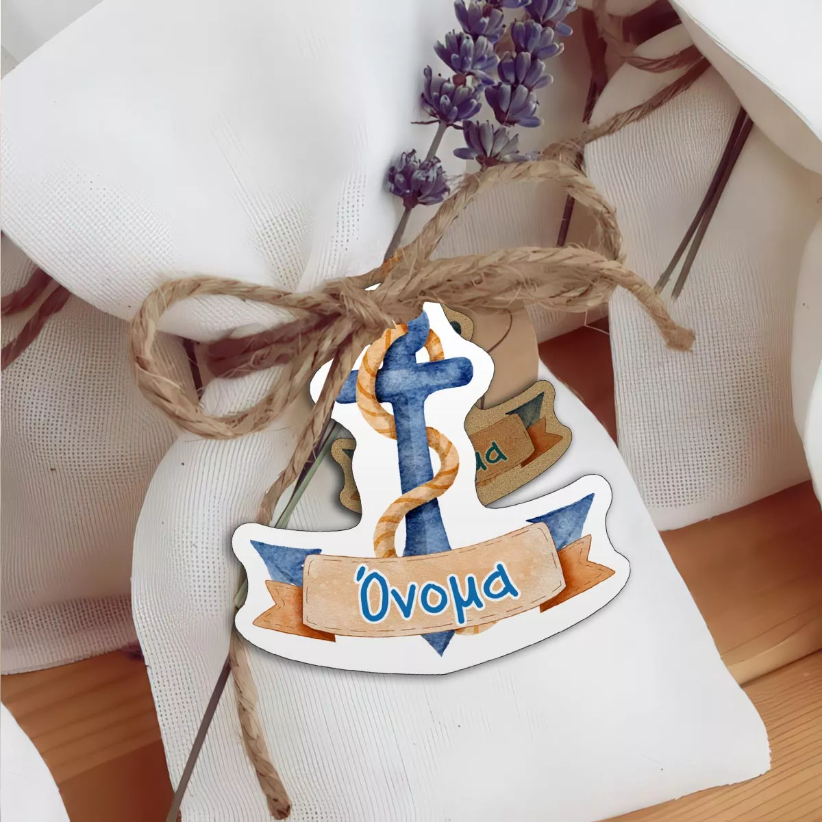 Προσφέρετε μια ξεχωριστή λεπτομέρεια στην ιεροτελεστία της βάπτισης. Αυτά τα κοπτικά καρτελάκια με θέμα την άγκυρα και το προσωποποιημένο όνομα του παιδιού σας, προσδίδουν έναν αέρα φρεσκάδας και συμβολισμού στις μπομπονιέρες σας. Κάθε καρτελάκι είναι μια μικρή δήλωση, συνδέοντας τους καλεσμένους σας με τη μοναδική στιγμή του μυστηρίου.