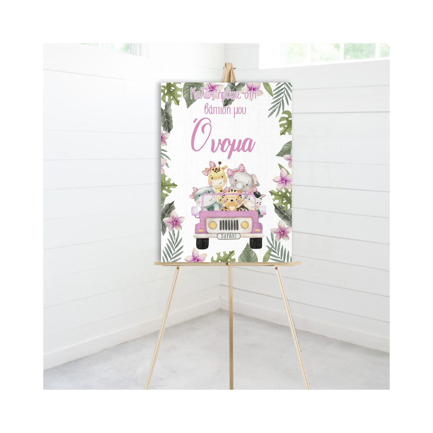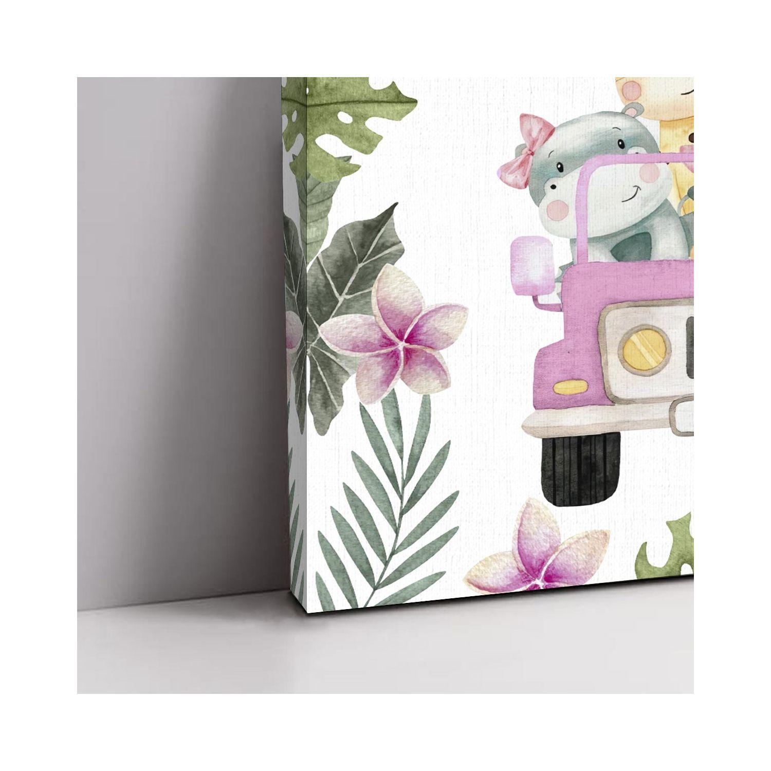 Παρέα ζωάκια σε ροζ τζιπάκι ζωγραφιστό, ξύλινη φιγούρα εκτυπωμένη