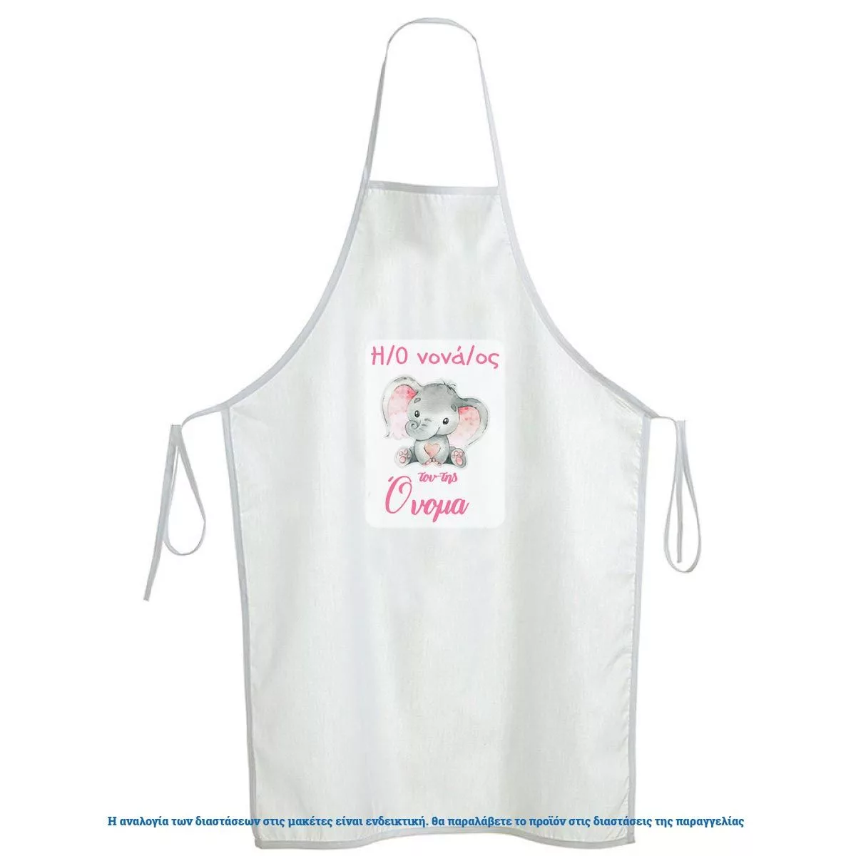 Ποδιά νονού νονάς, Ελεφαντάκι Ροζ watercolor 3