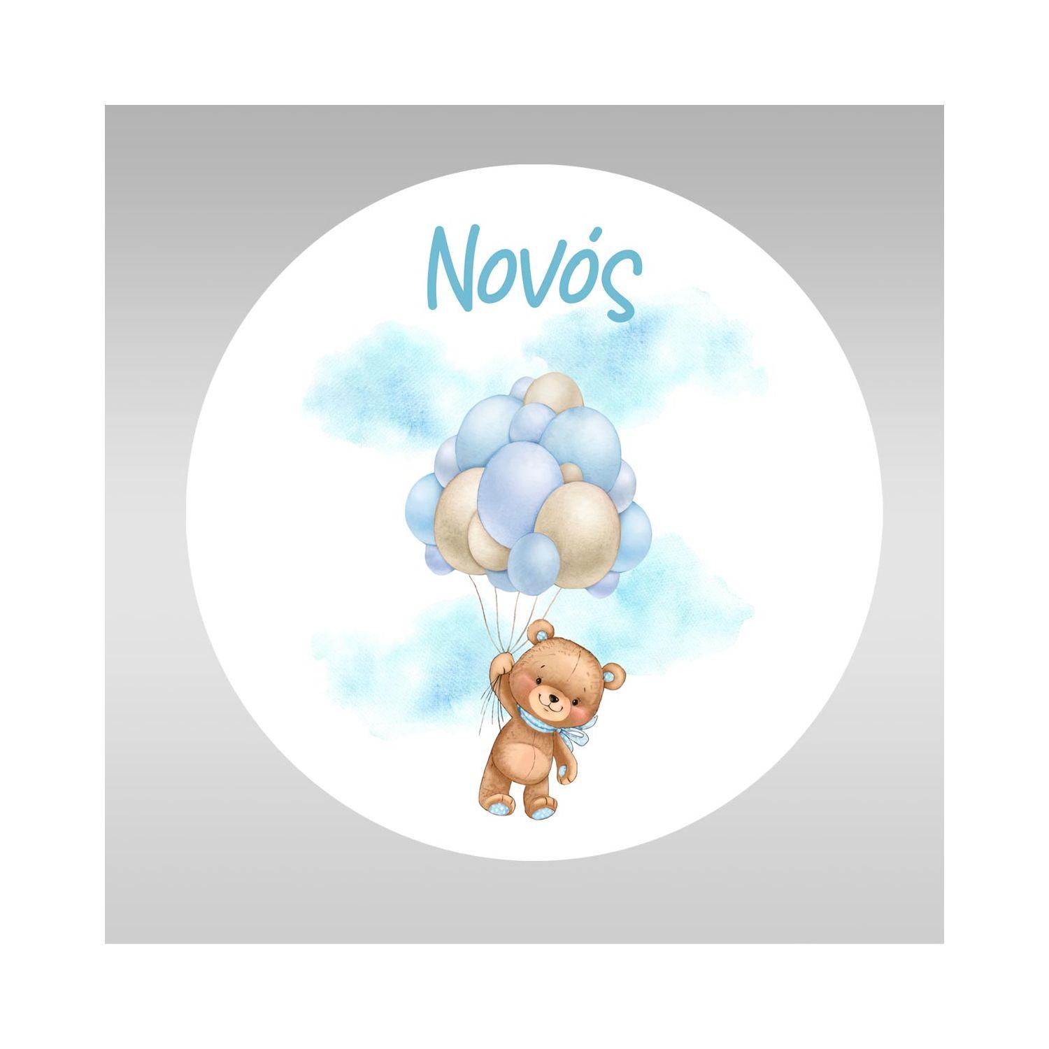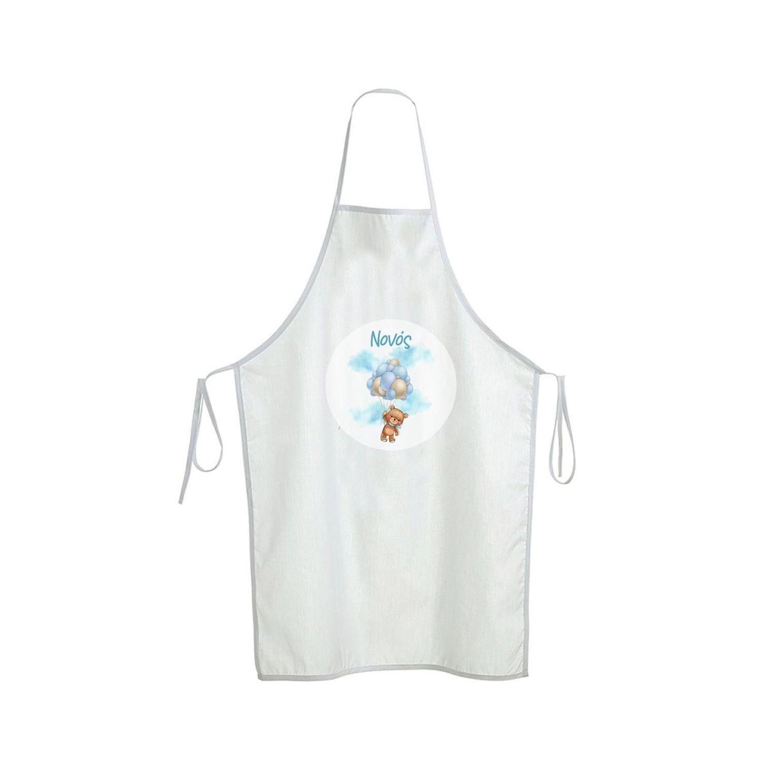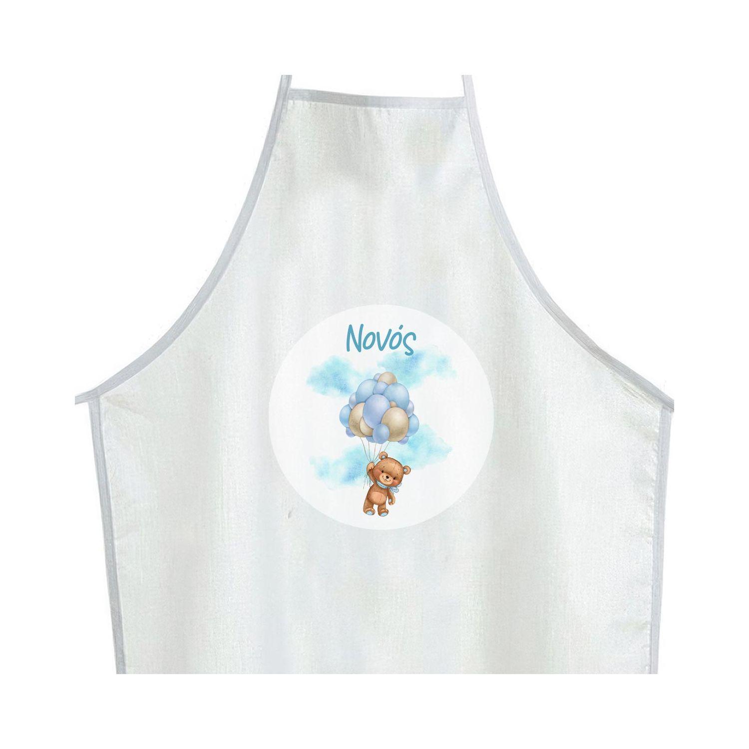 Αυτοκόλλητη ετικέτα ποδιάς, Αρκουδάκι με μπλε μπαλόνια