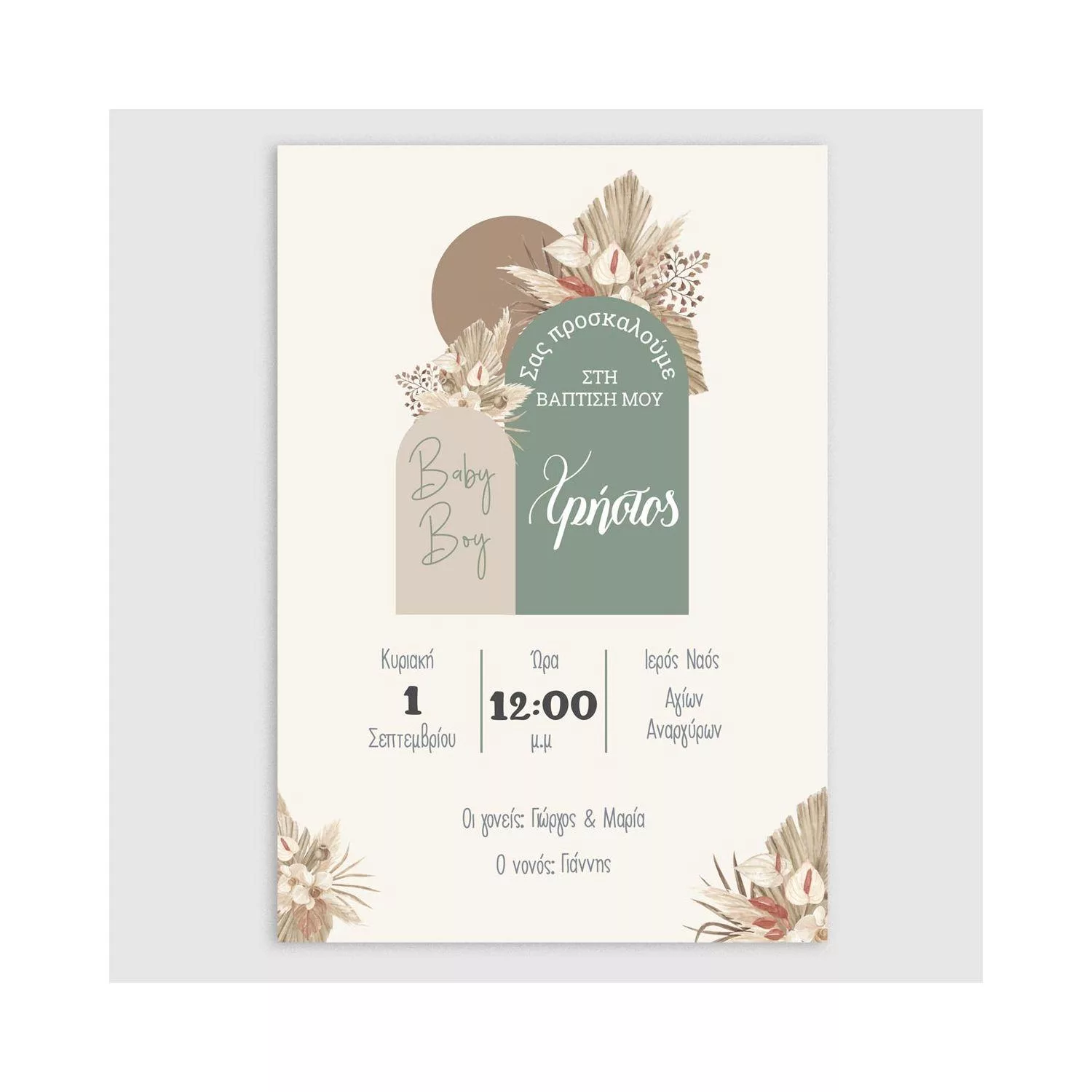 Προσκλητήριο βάπτισης, Baby boy boho