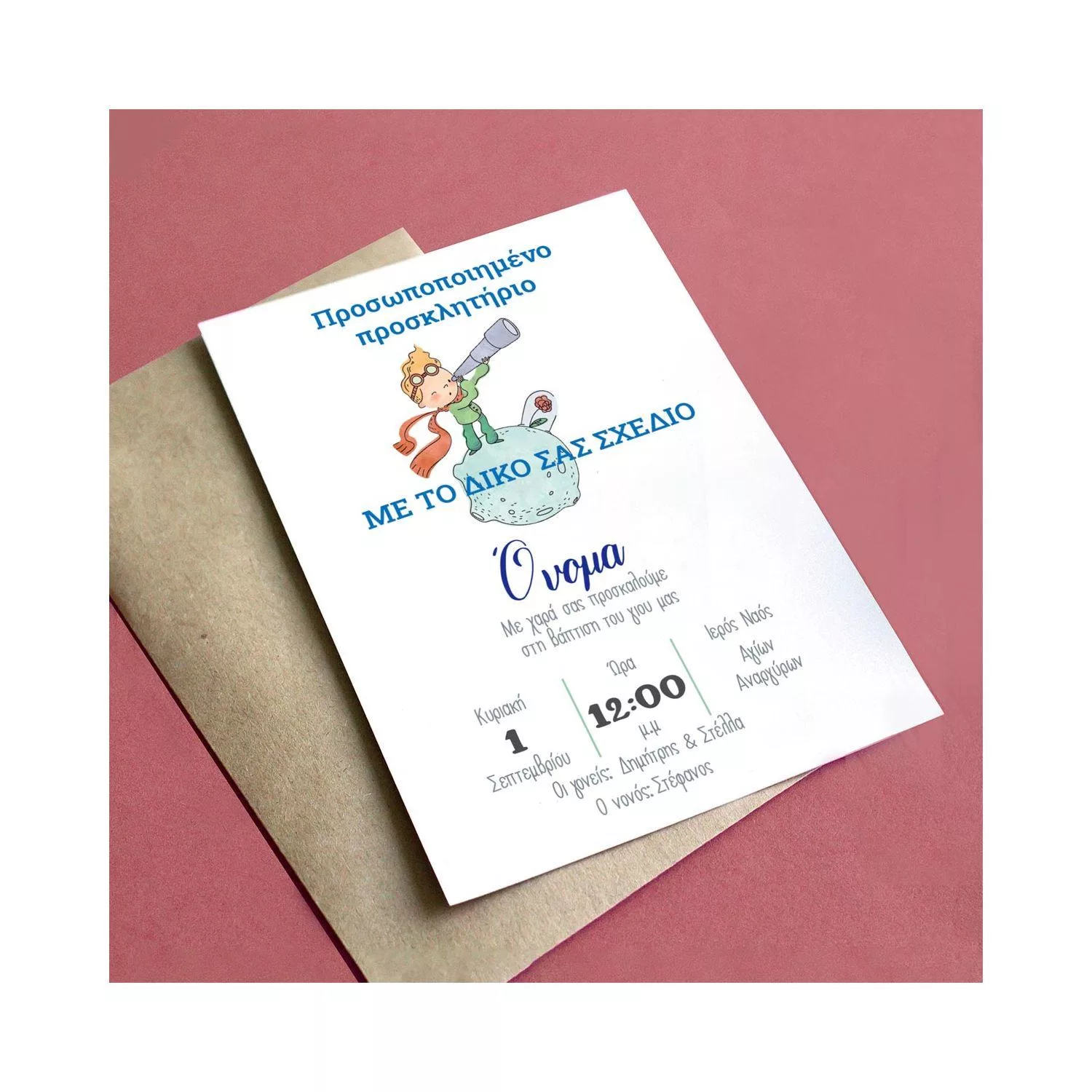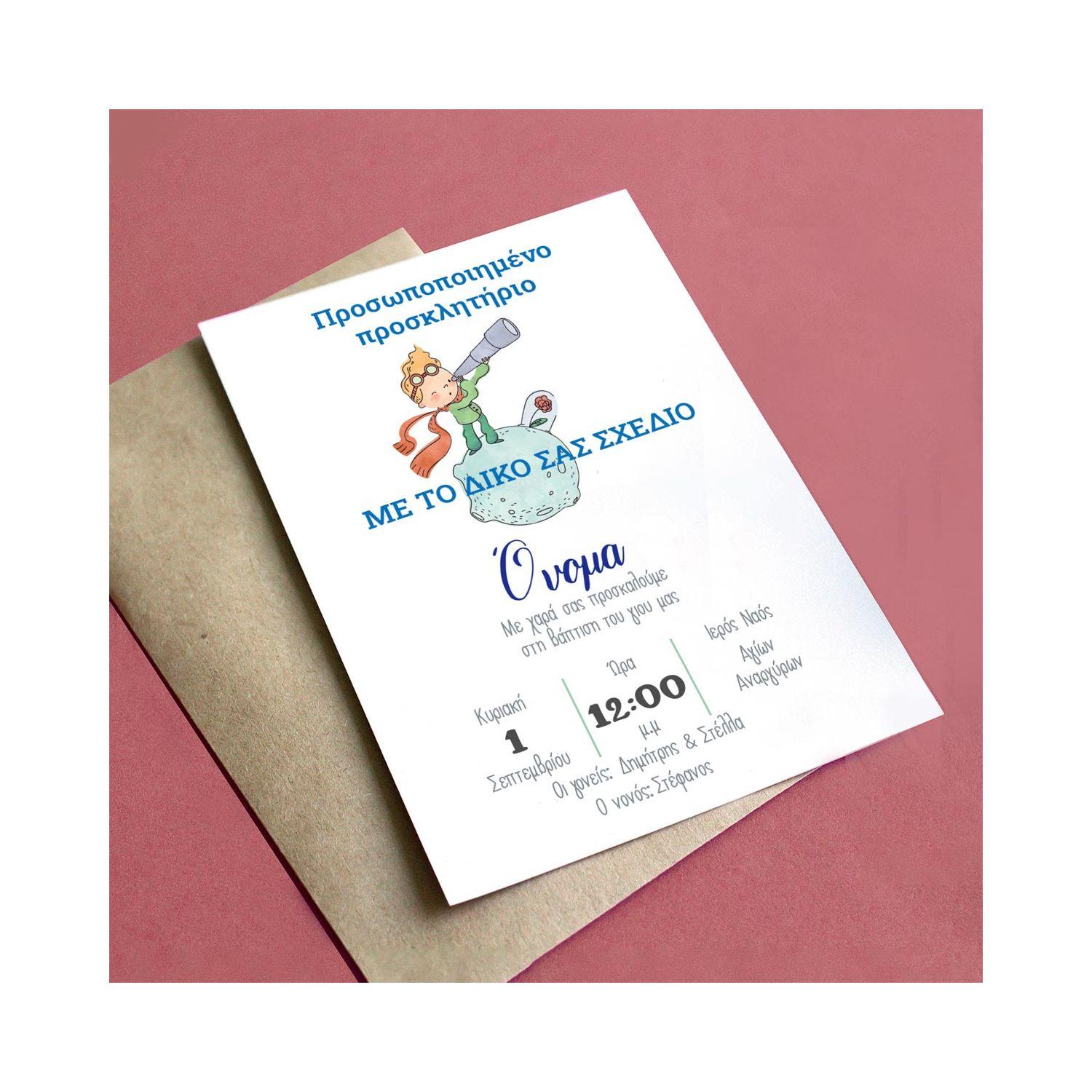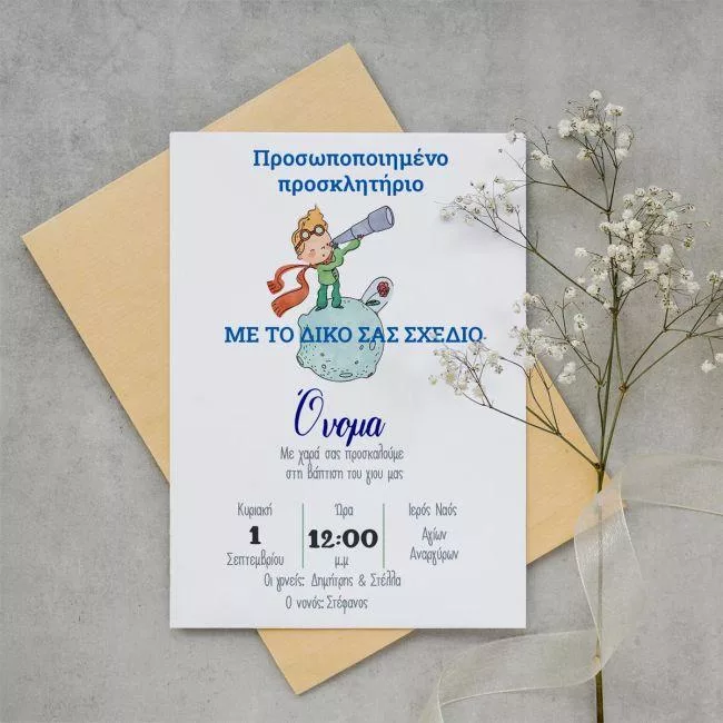 Προσκλητήριο βάπτισης για αγόρι προσωποποιημένο