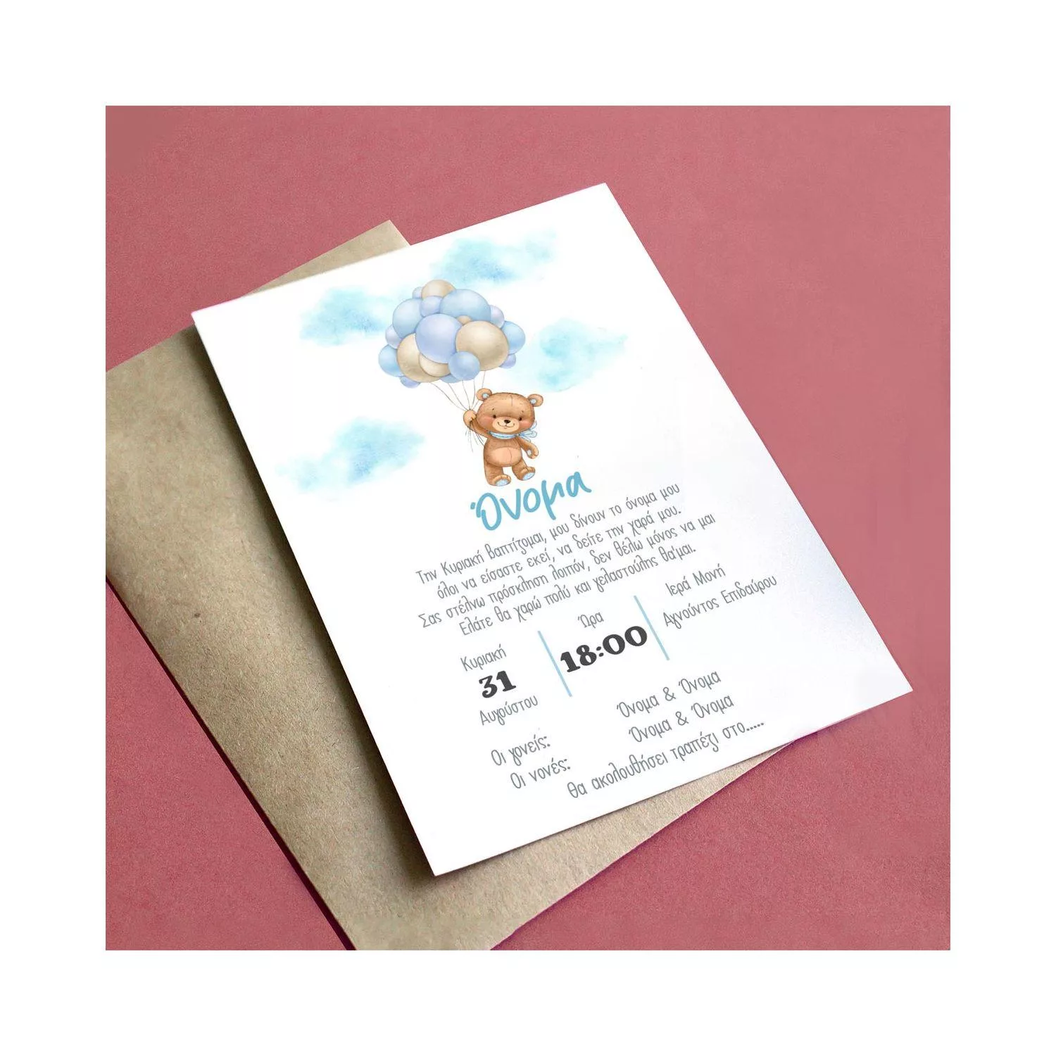 Προσκλητήριο βάπτιση, Αρκουδάκι με μπλε μπαλόνια