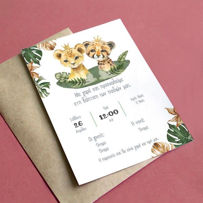 Προσκλητήριο βάπτισης δίδυμα, Λιονταράκι και τιγράκι