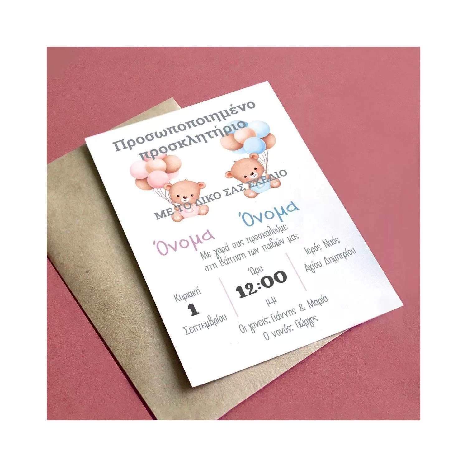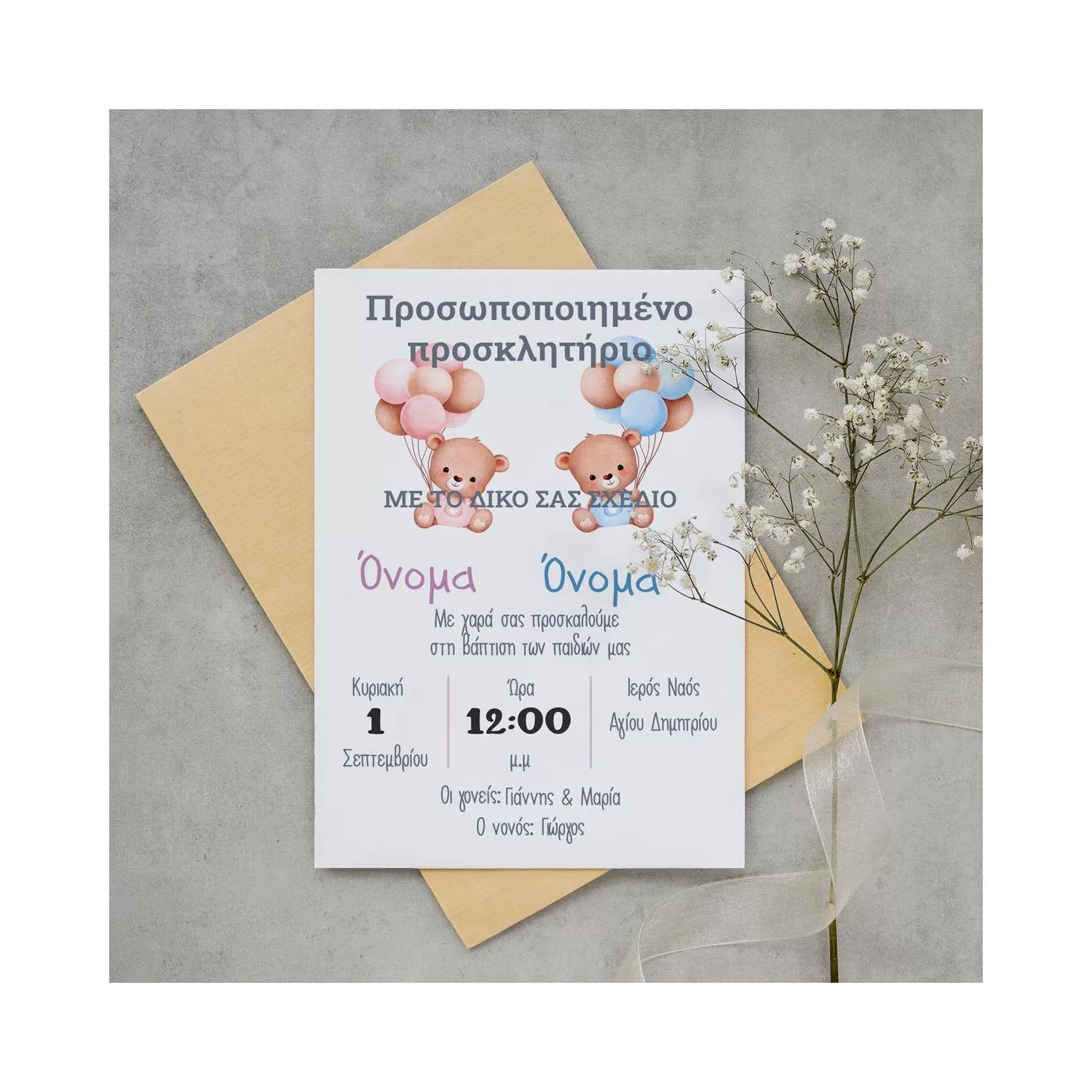 Προσκλητήριο βάπτισης για δίδυμα προσωποποιημένο