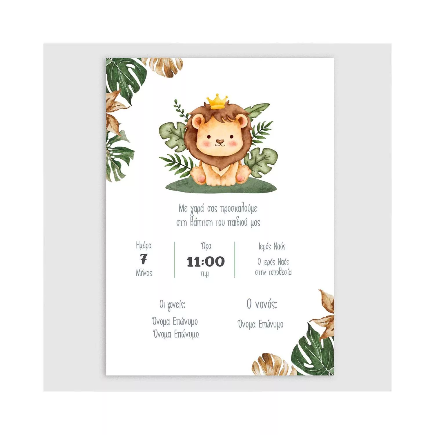 Προσκλητήριο βάπτισης, Λιονταράκι πρίγκιπας