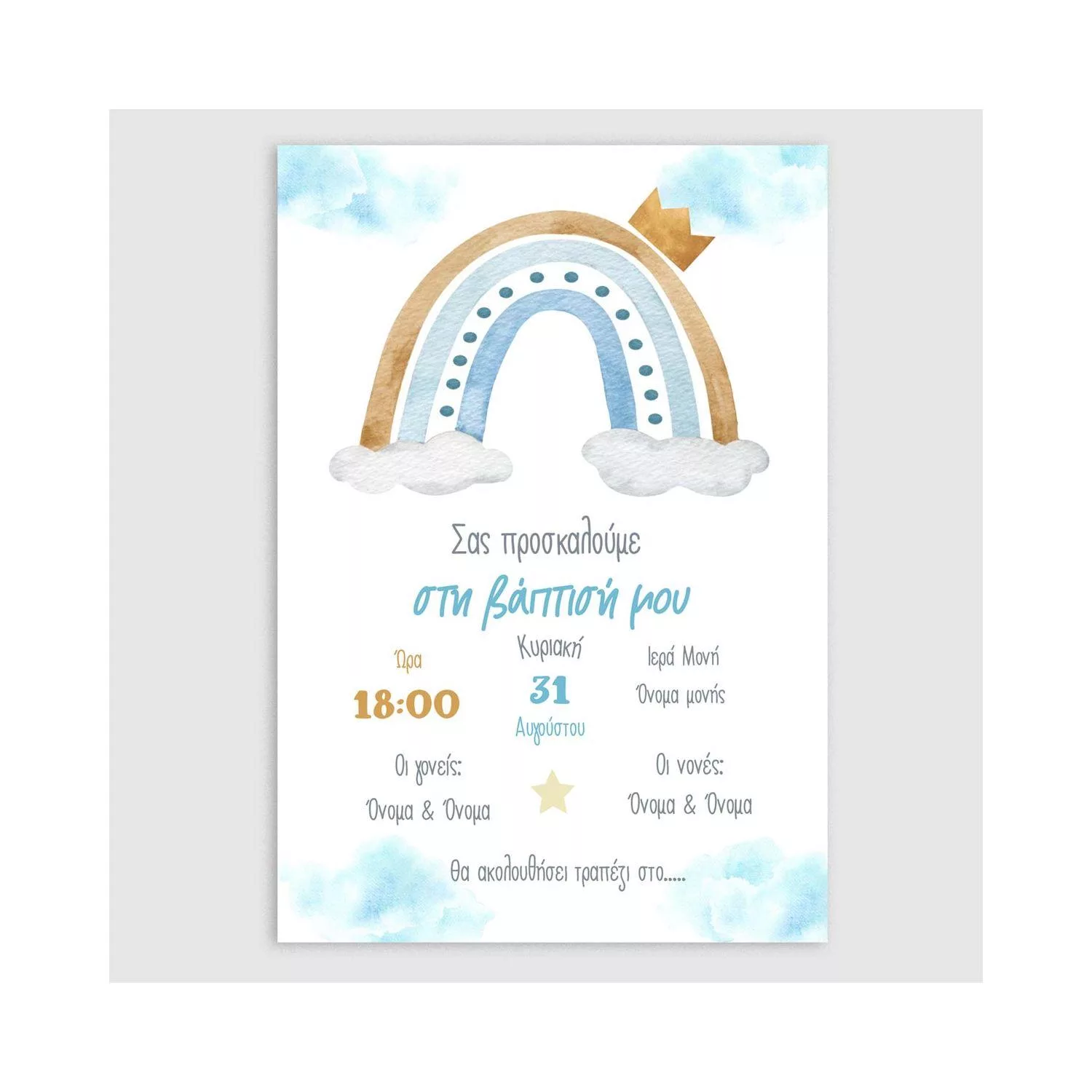 Προσκλητήριο βάπτισης, Ουράνιο τόξο με συννεφάκια και κορόνα boy