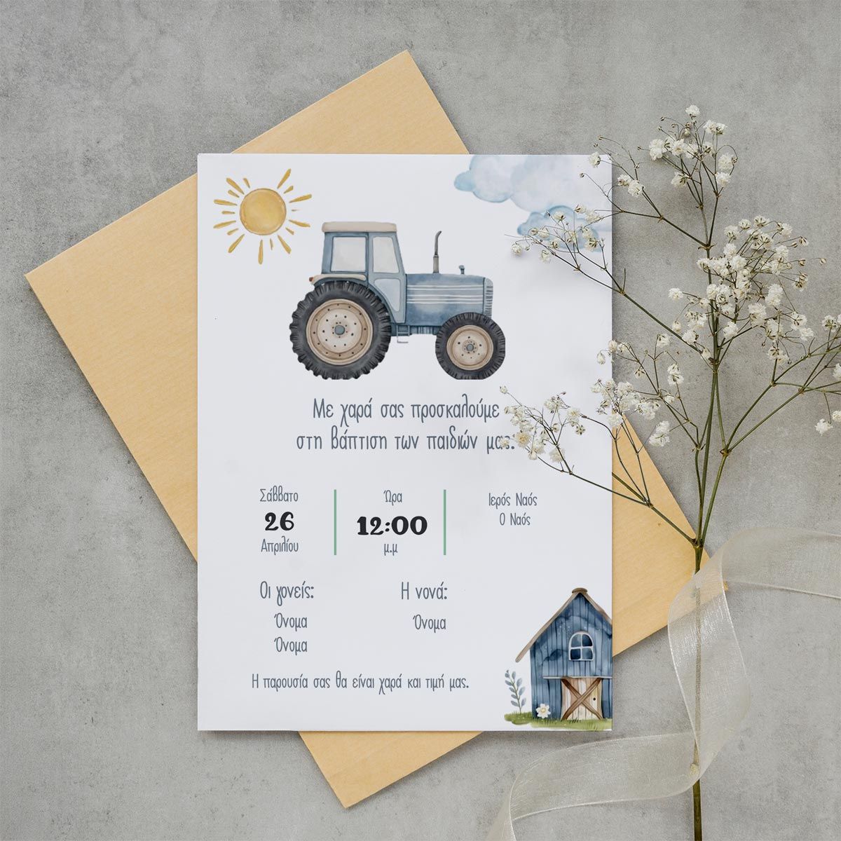 Προσκλητήριο βάπτισης, Τρακτέρ στον αγρό