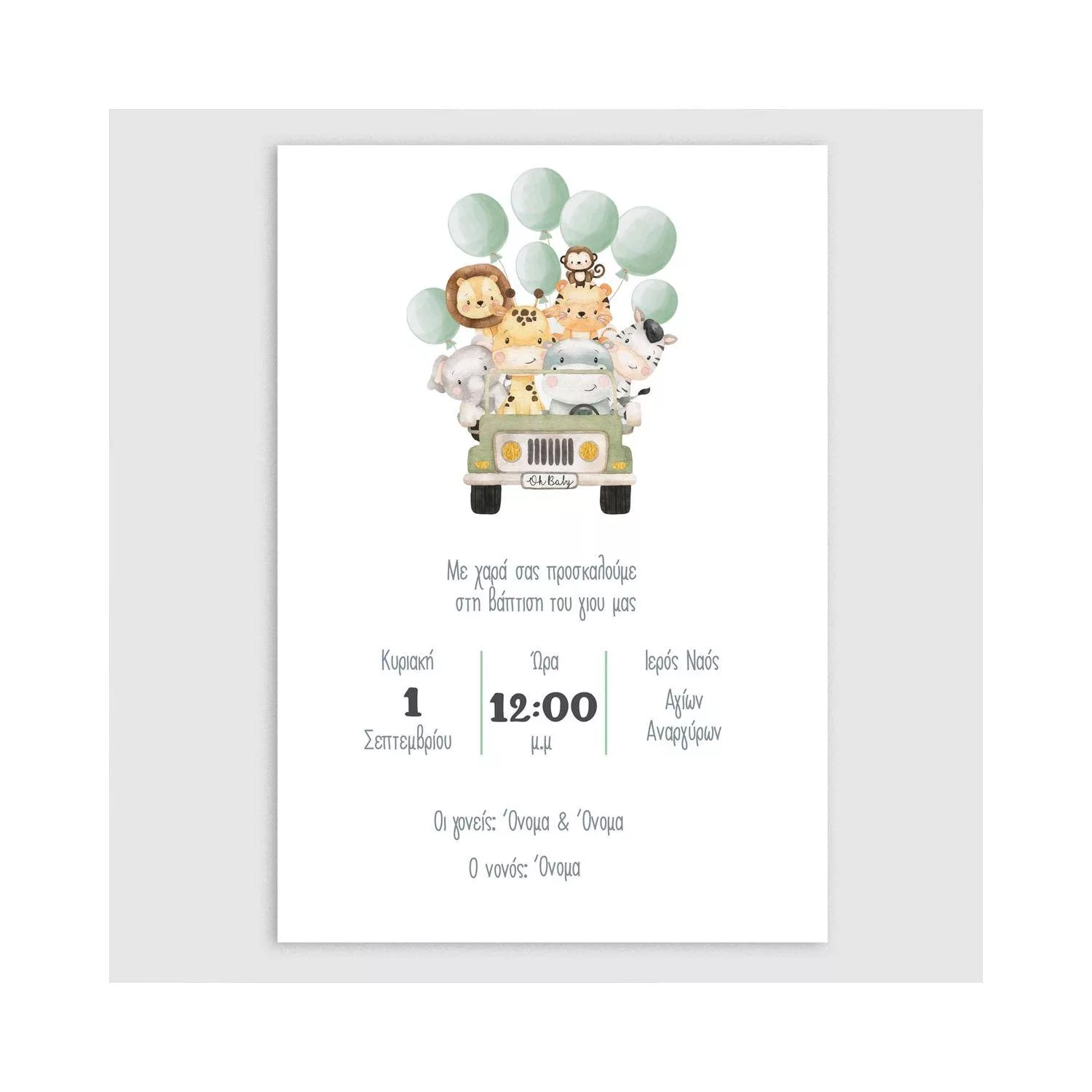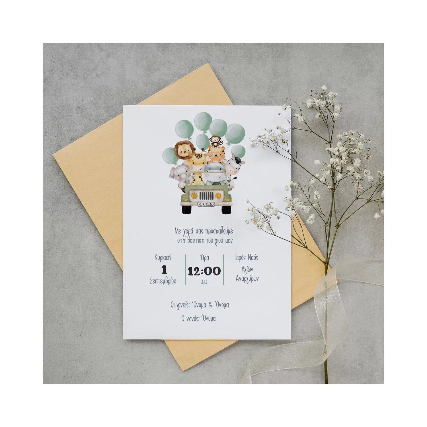 Προσκλητήριο βάπτισης, Ζωάκια σε τζιπάκι με μπαλόνια