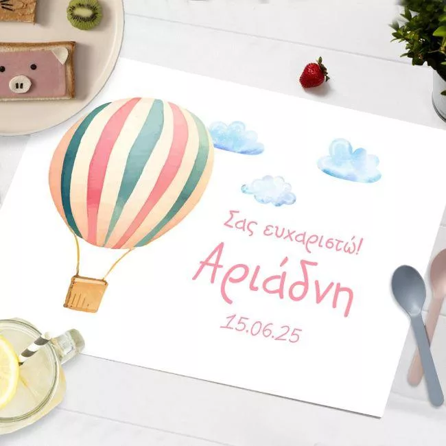 Σουπλά μιας χρήσης, Αερόστατο watercolor με όνομα, Ροζ θέμα 2