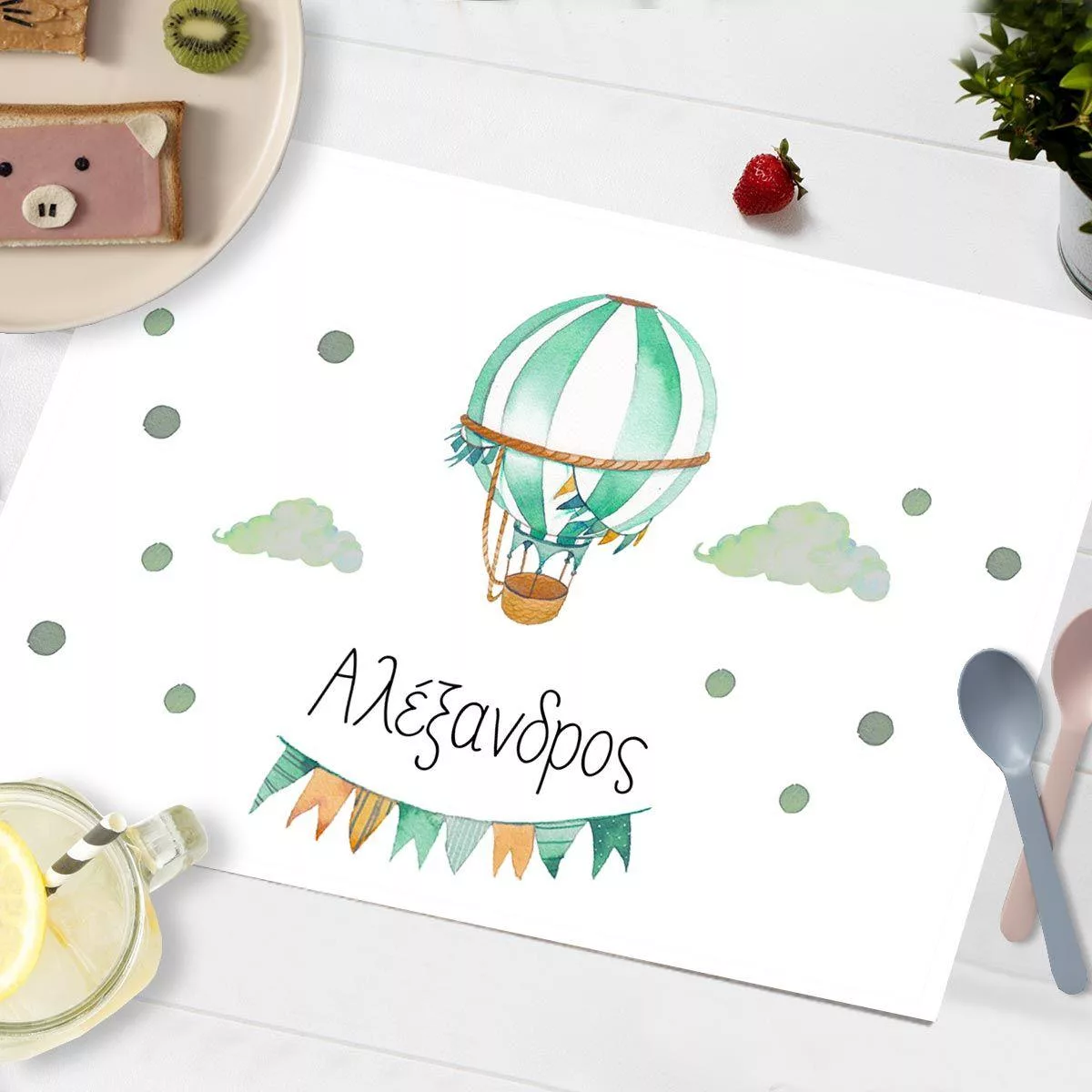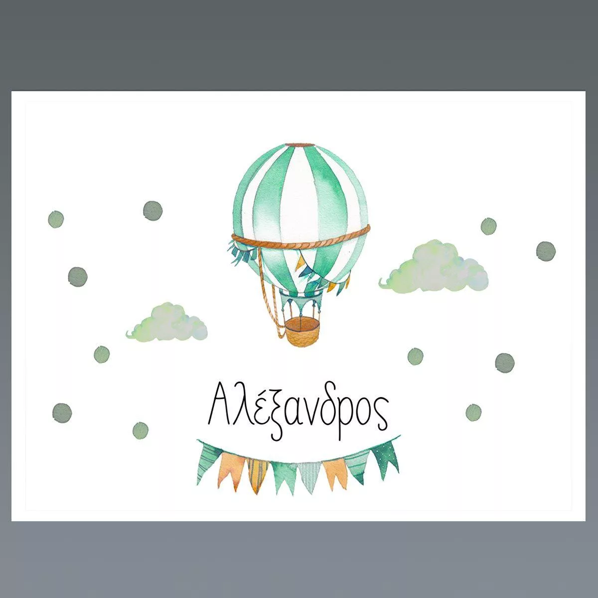 Σουπλά μιας χρήσης, Αερόστατο watercolor με όνομα, πράσινο