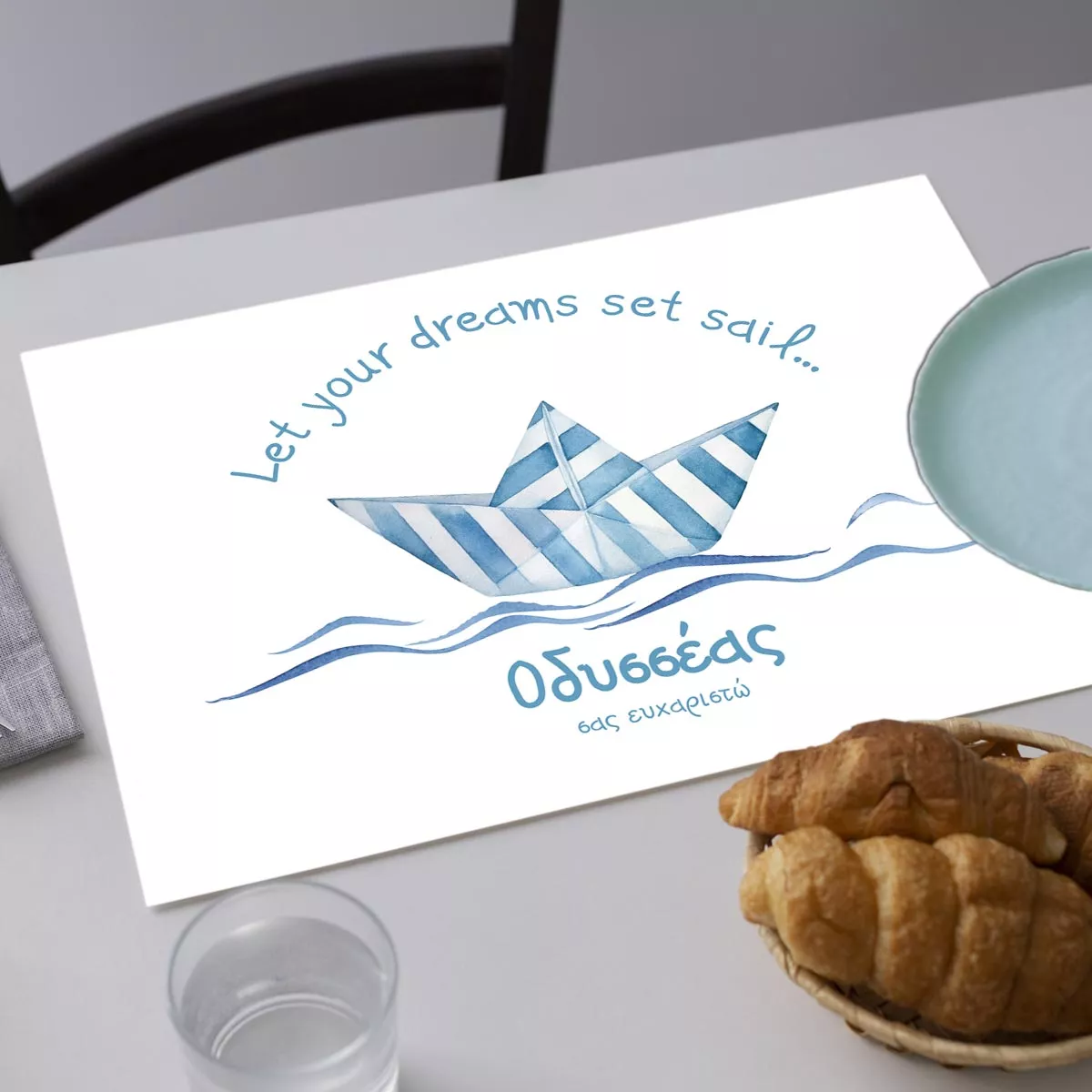 Δημιουργήστε ένα ονειρικό σκηνικό στη δεξίωση της βάπτισης με αυτά τα κομψά, θεματικά σουπλά. Το τραπέζι των καλεσμένων ή το τραπέζι ευχών αποκτά μια ξεχωριστή, ναυτική αύρα, καλωσορίζοντας τους αγαπημένους σας με έναν όμορφο και προσωπικό τρόπο.