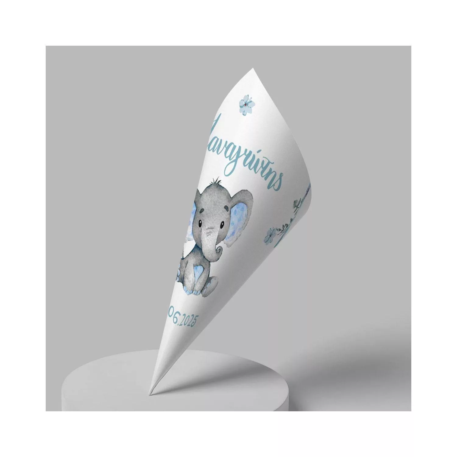 Χάρτινα χωνάκια βάπτισης για γλυκά ή marshmallows προσωποποιημένα