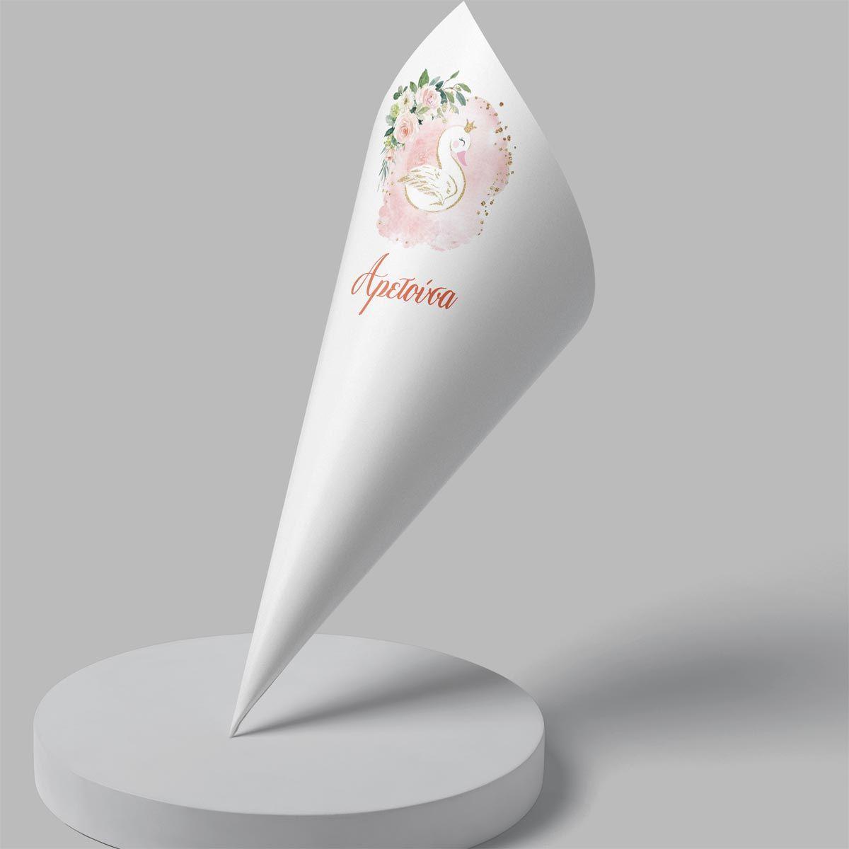 Χωνάκια ζαχαρωτών Κύκνος με λουλούδια