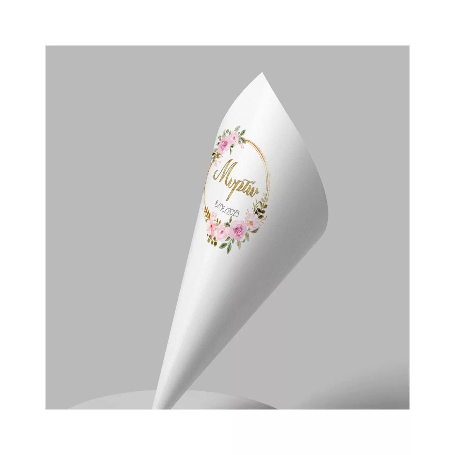 Χάρτινα χωνάκια βάπτισης για γλυκά ή marshmallows προσωποποιημένα