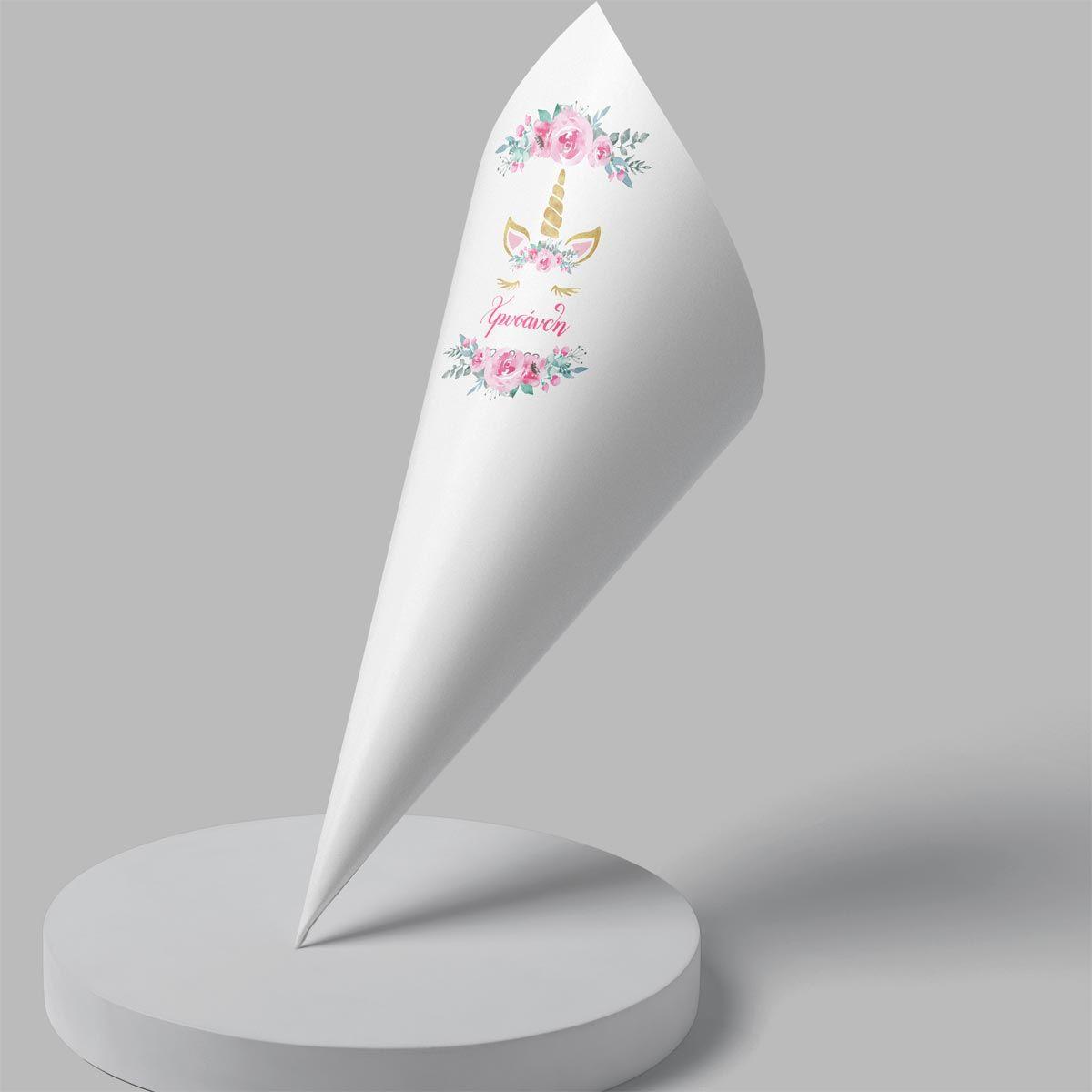 Χωνάκια ζαχαρωτών Μονόκερος με ζωγραφιστά λουλούδια