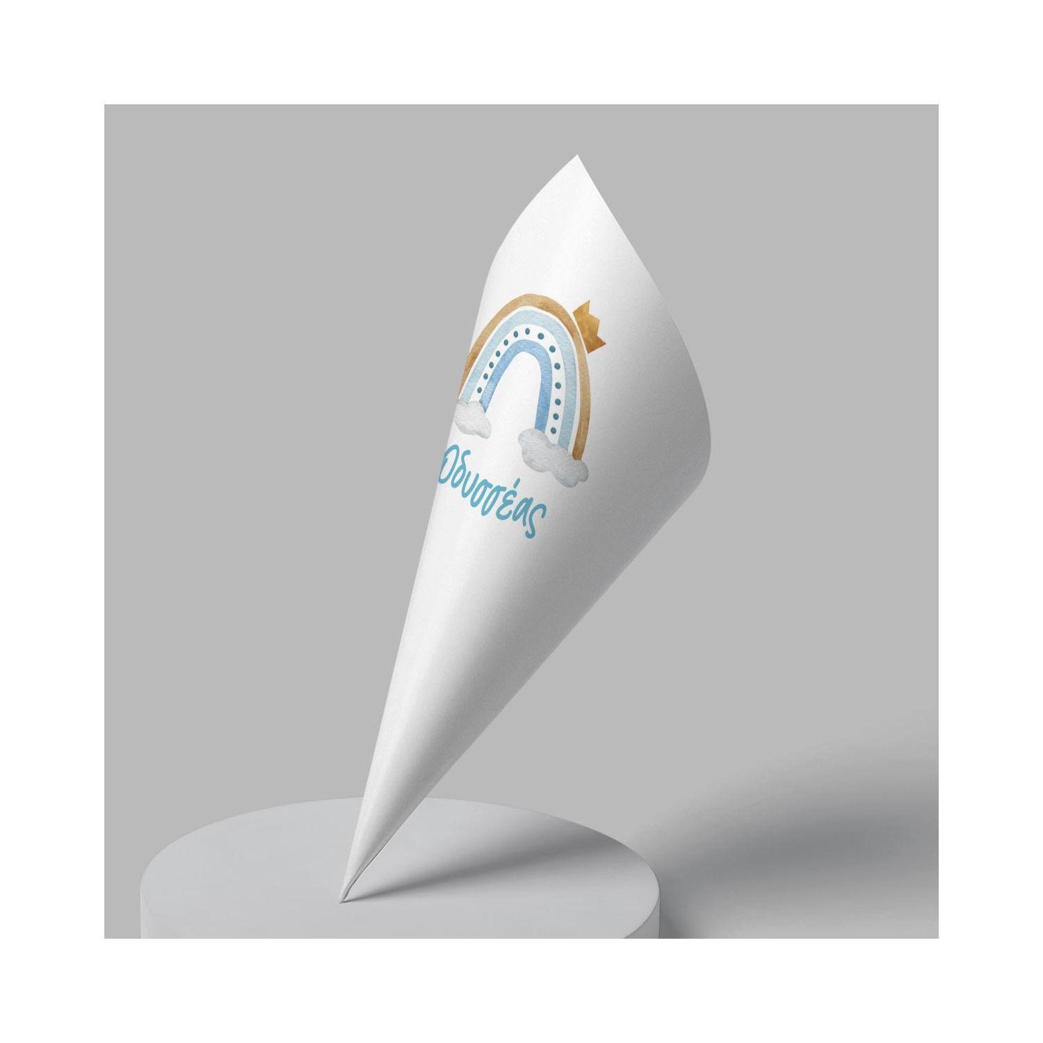 Χάρτινα χωνάκια βάπτισης για γλυκά ή marshmallows προσωποποιημένα