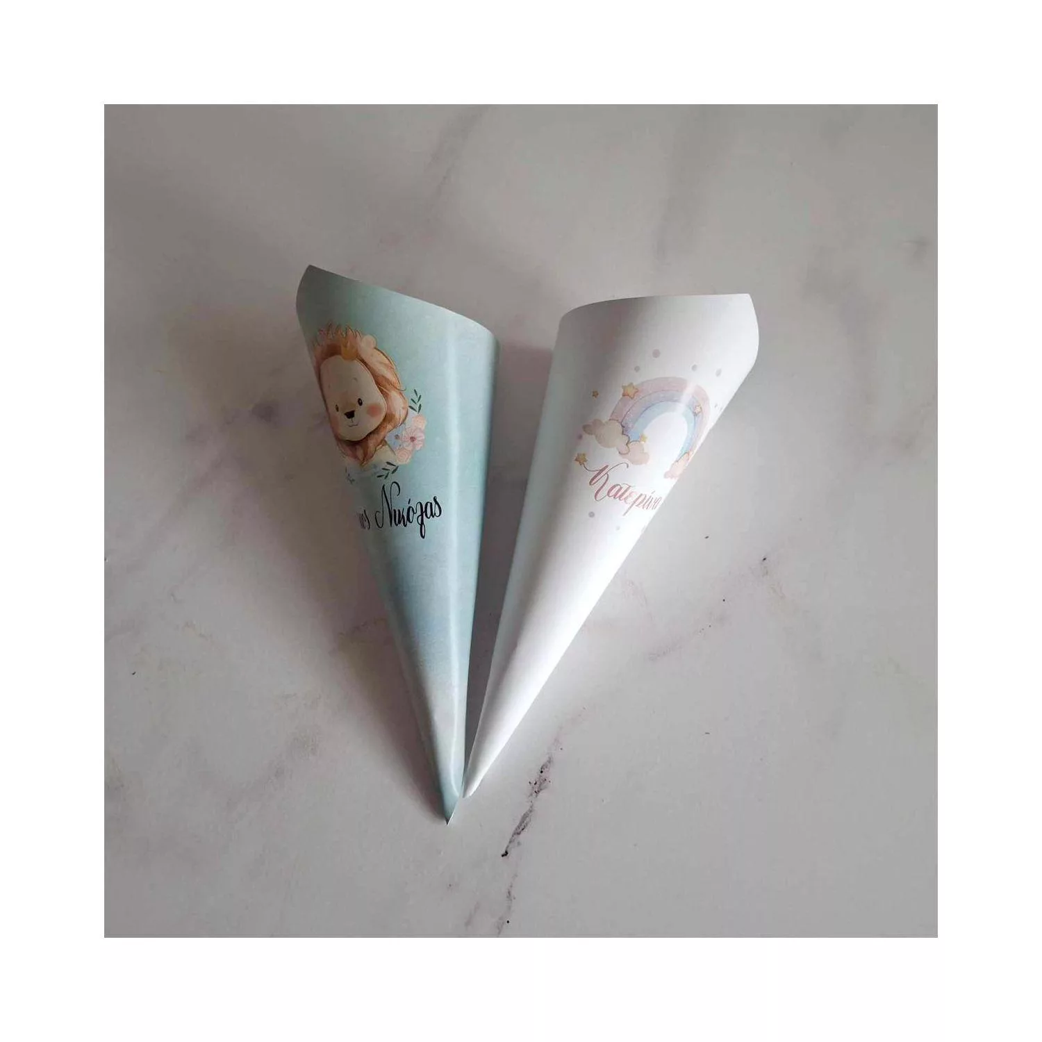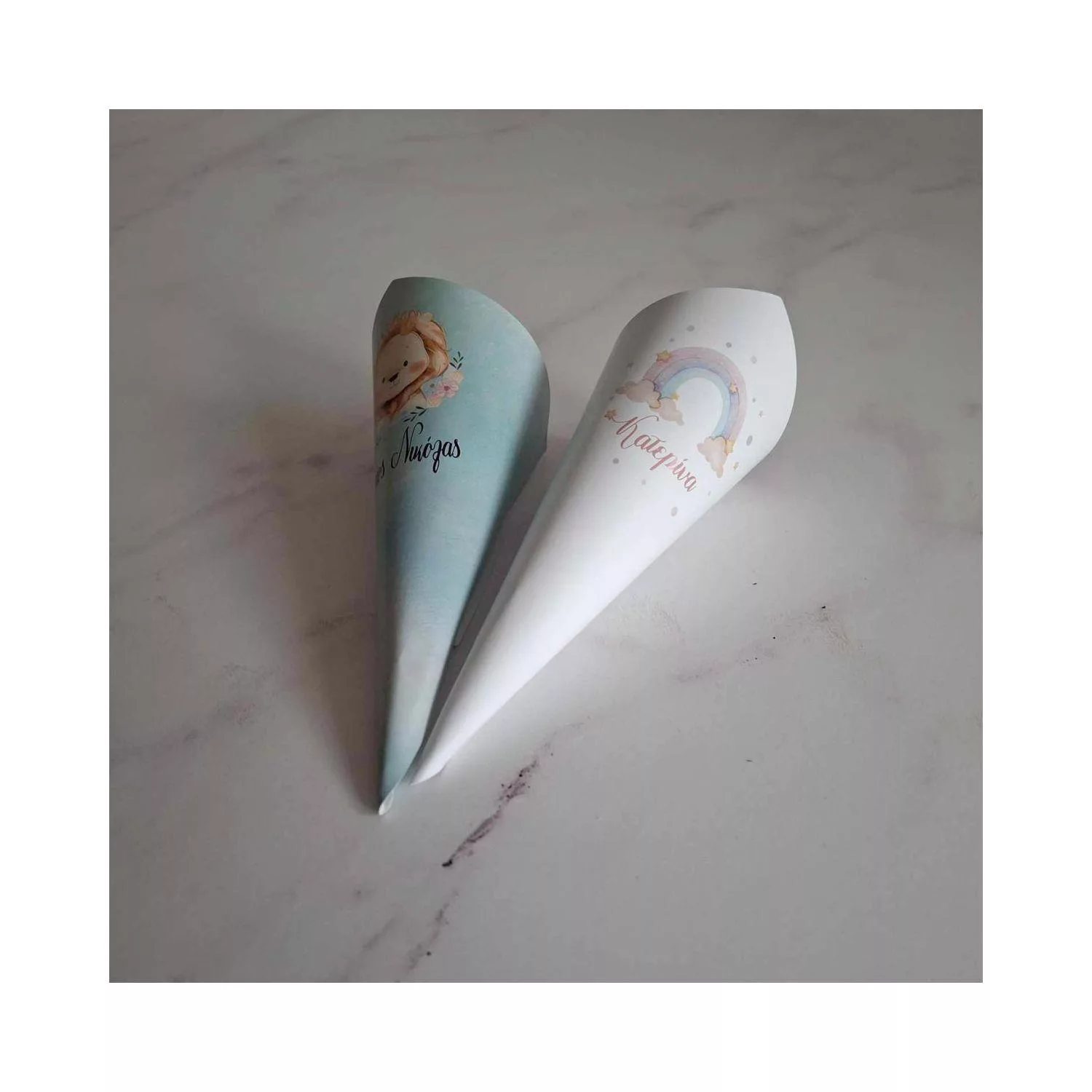 Χάρτινα χωνάκια βάπτισης για γλυκά ή marshmallows προσωποποιημένα