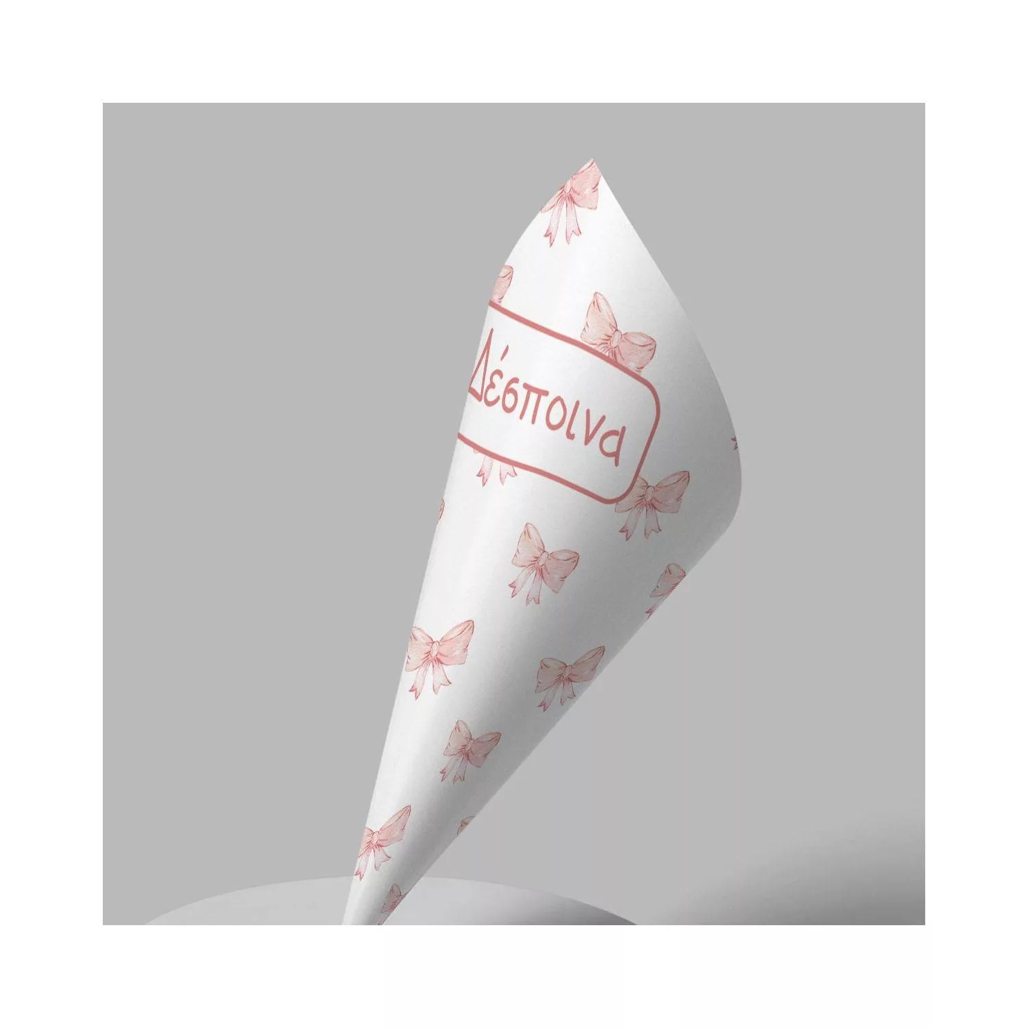 Χάρτινα χωνάκια βάπτισης για γλυκά ή marshmallows προσωποποιημένα