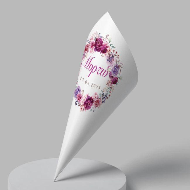 Χωνάκια ζαχαρωτών, Στεφανάκι λουλουδιών με όνομα και ημερομηνία