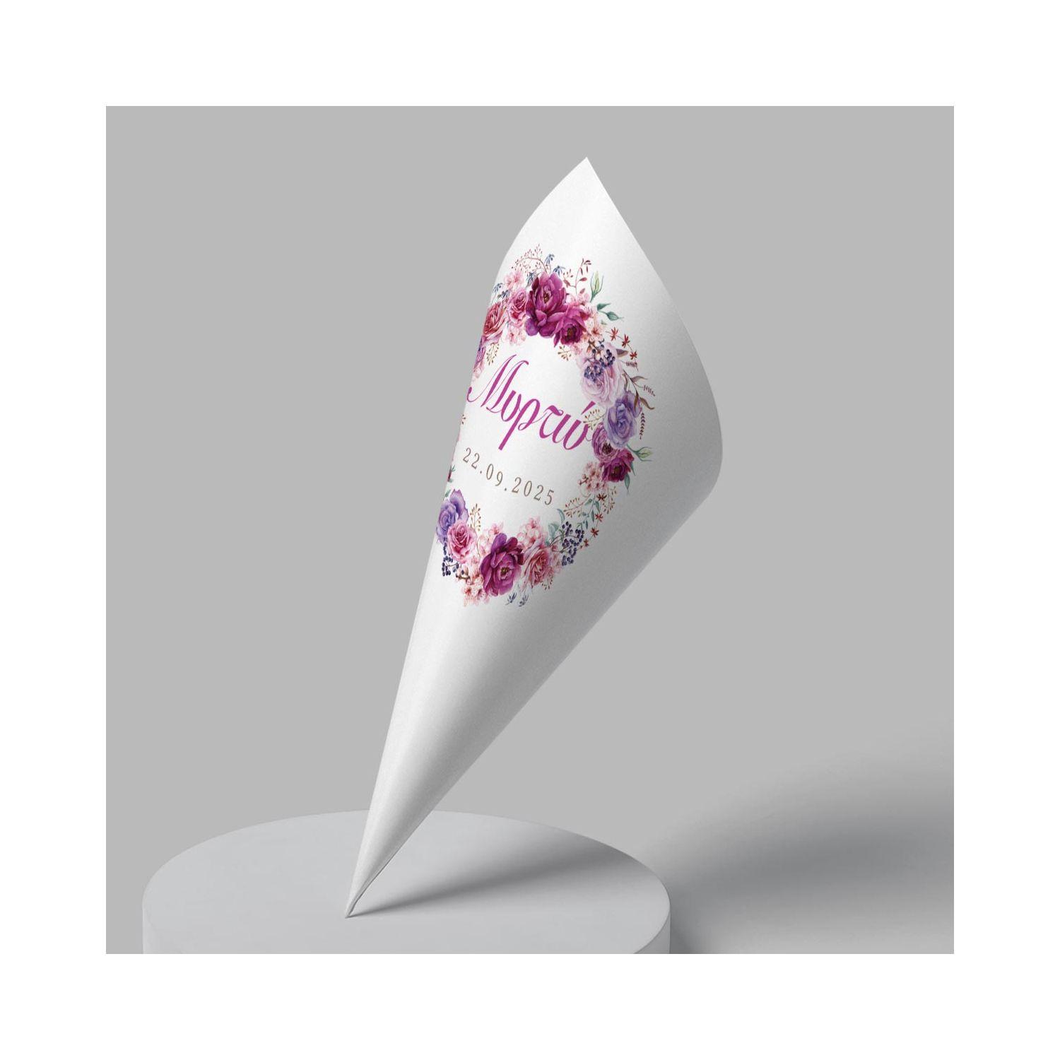 Χάρτινα χωνάκια βάπτισης για γλυκά ή marshmallows προσωποποιημένα