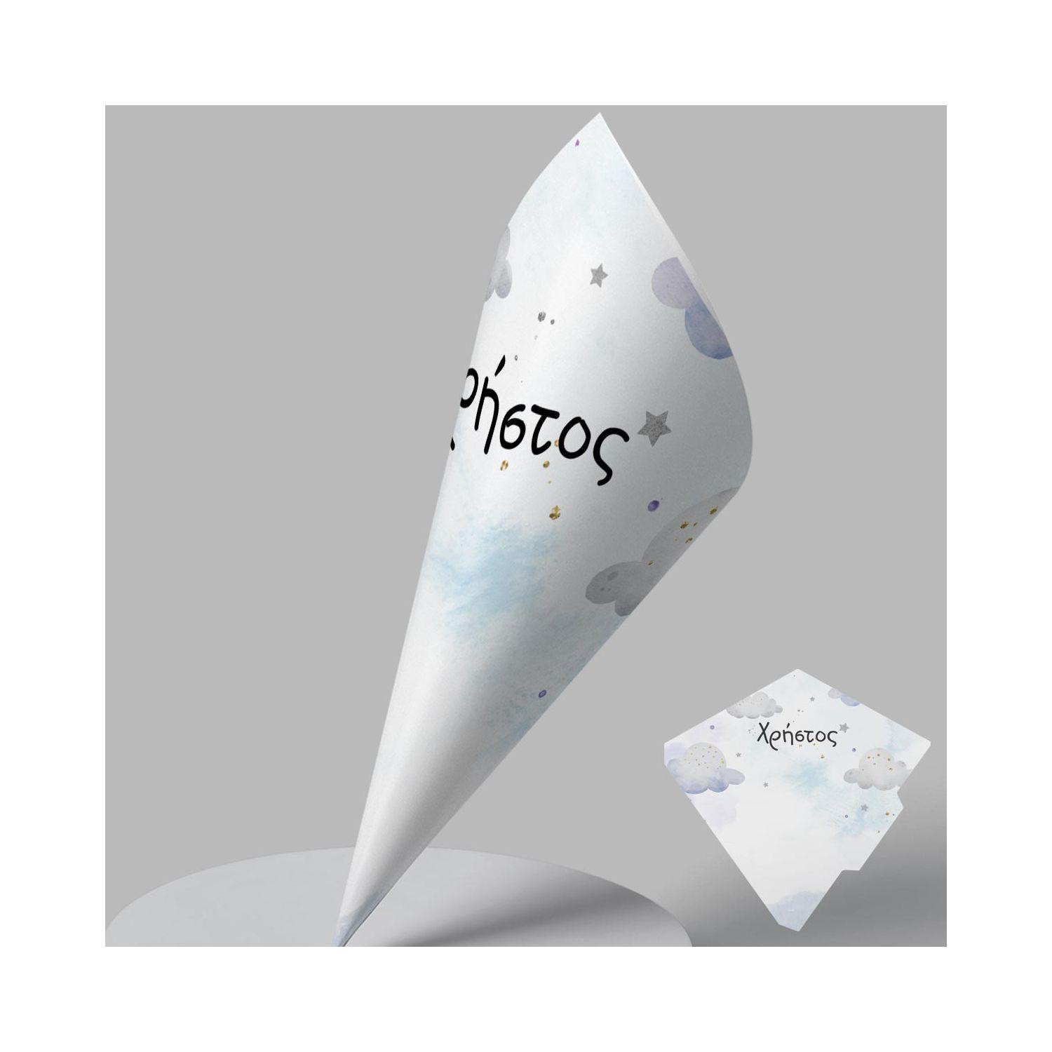 Χάρτινα χωνάκια βάπτισης για γλυκά ή marshmallows προσωποποιημένα