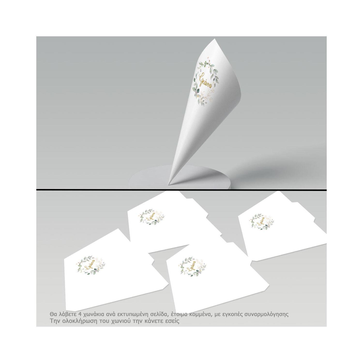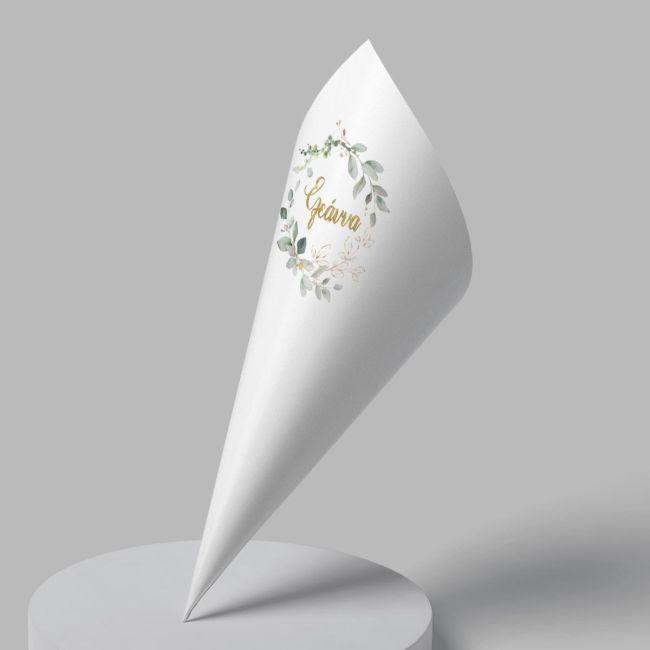 Χωνάκια ζαχαρωτών, Vintage ζωγραφιστά φύλλα και λουλούδια, χρυσό όνομα
