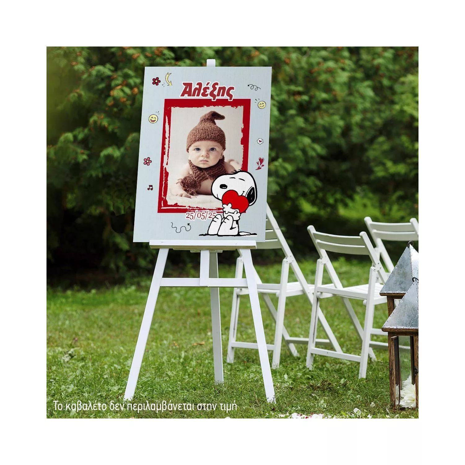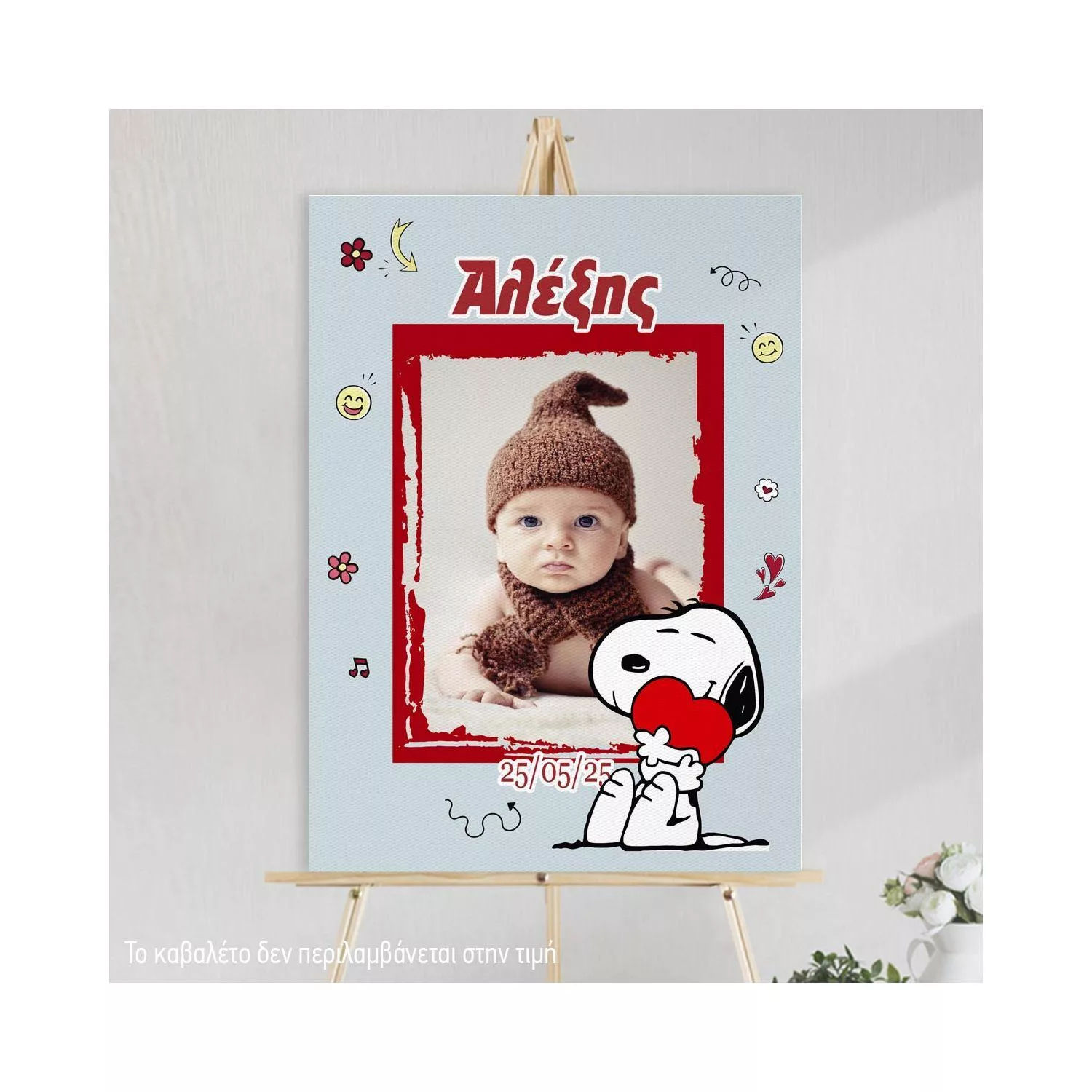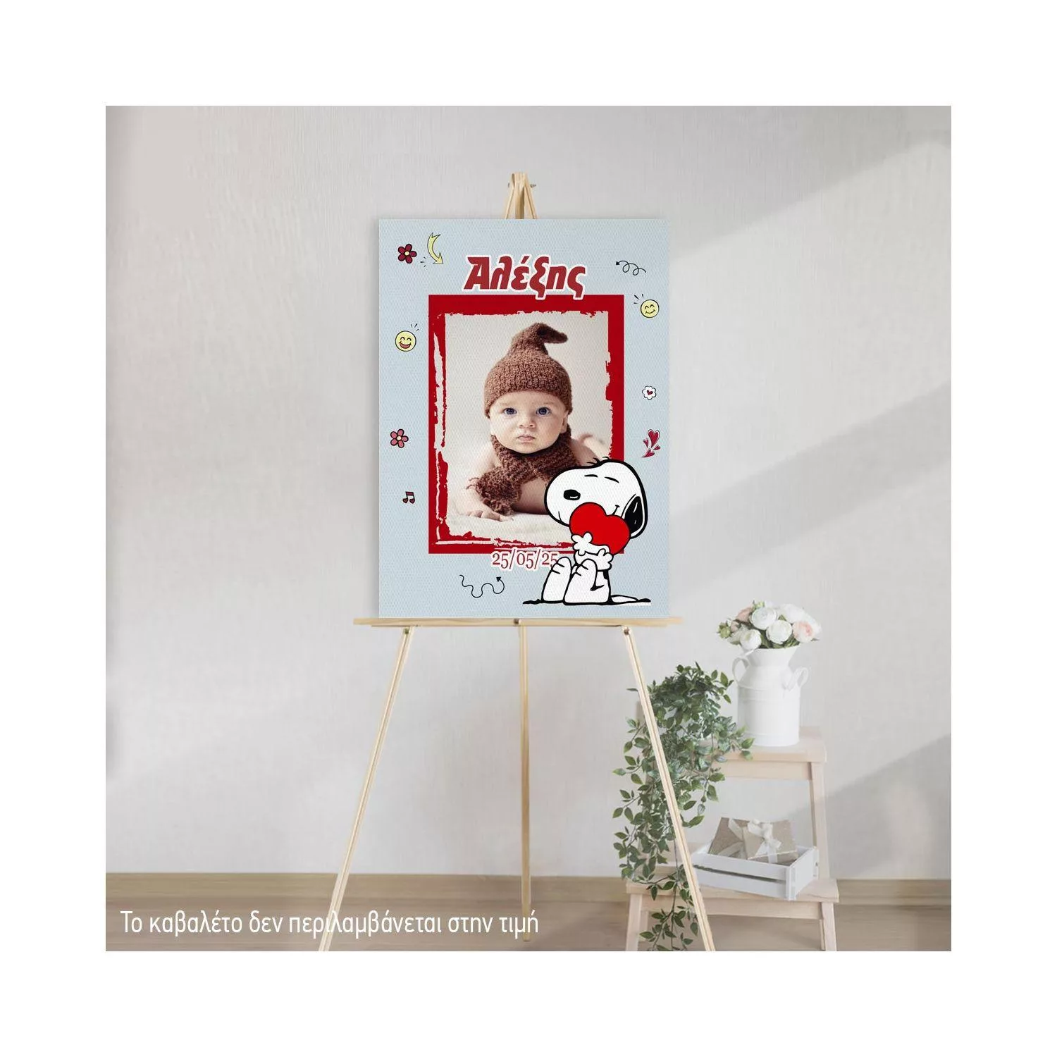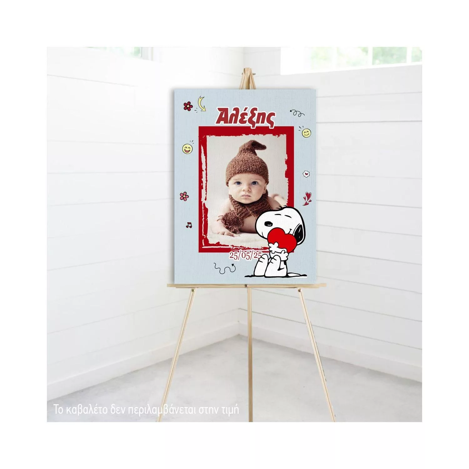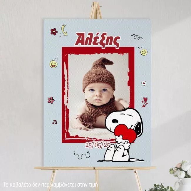 Πίνακας καλωσόρισμα βάπτισης Snoopy με φωτογραφία