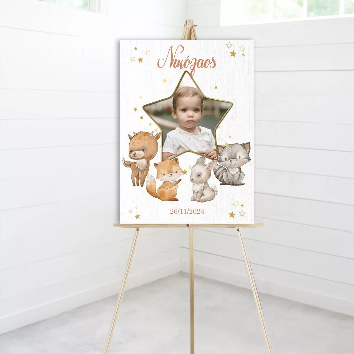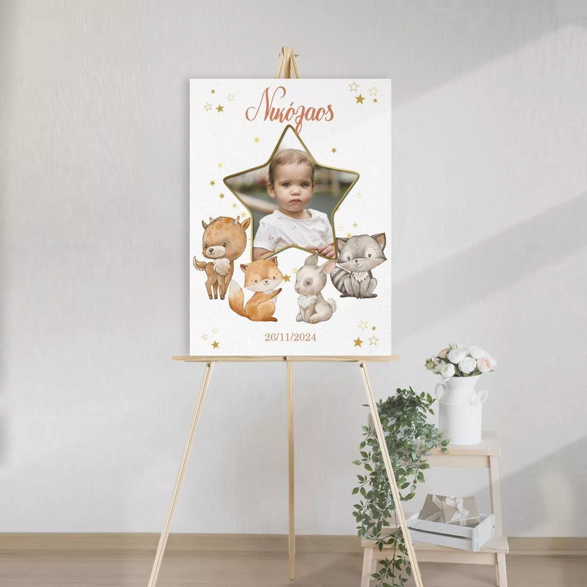 Πίνακας καλωσόρισμα βάπτισης, Αστέρι με φωτογραφία και ζωάκια του δάσους