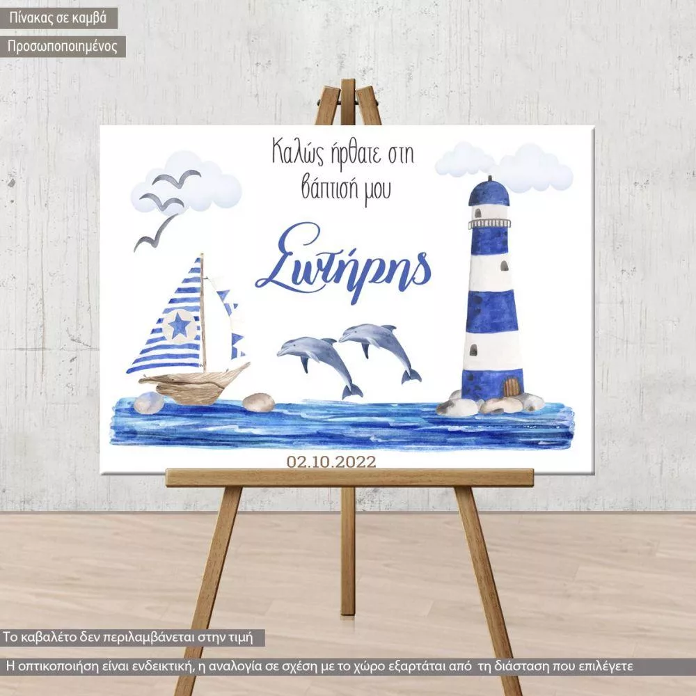 Πίνακας καλωσόρισμα βάπτισης, Ναυτικό θέμα ζωγραφιστό, προσωποποιημένη