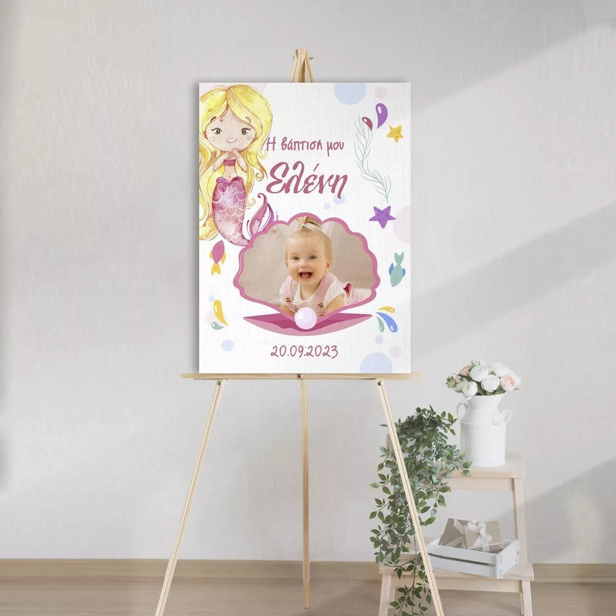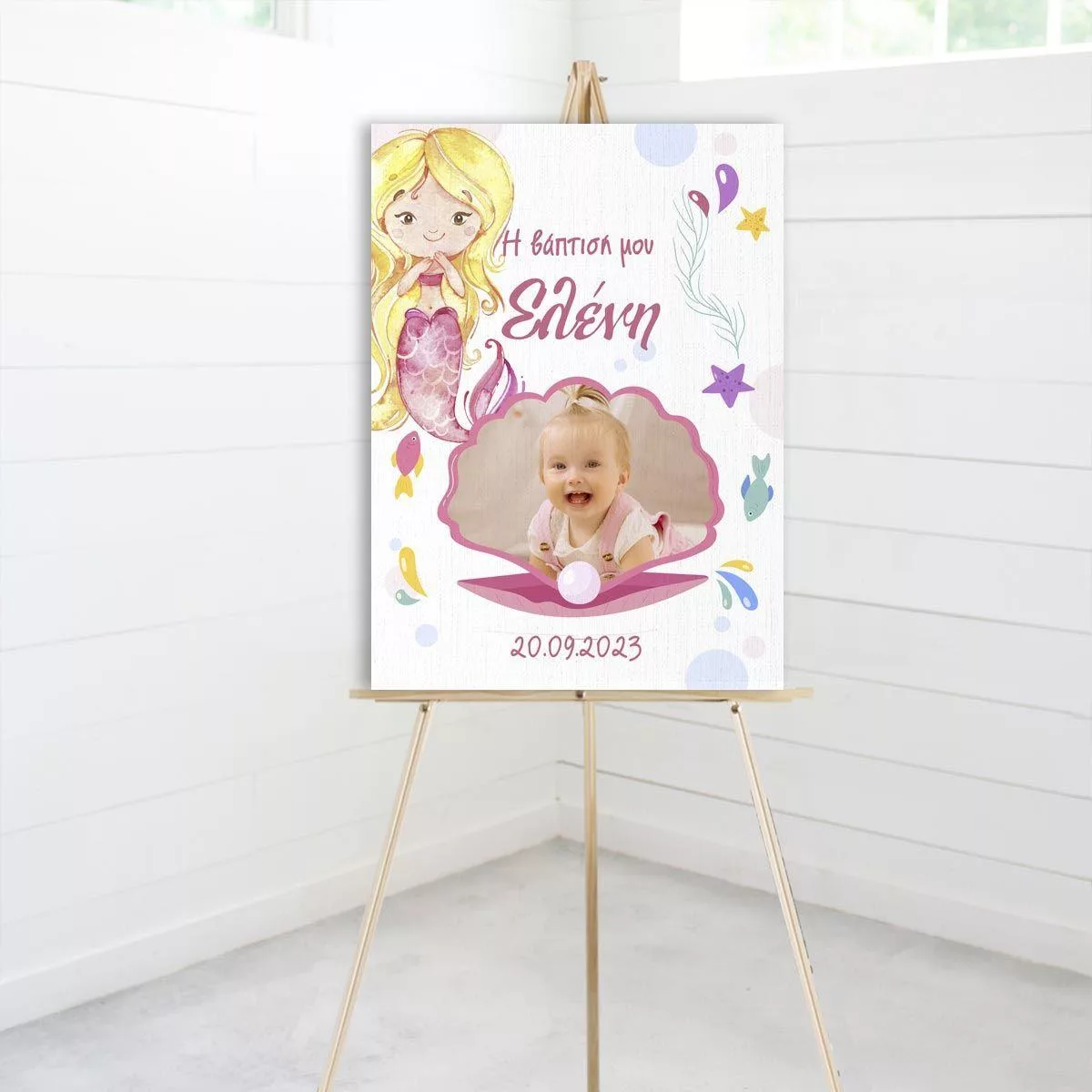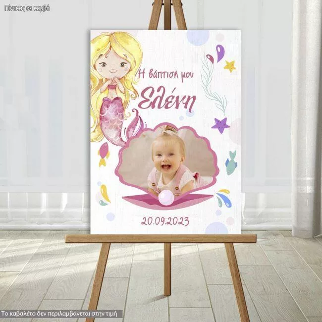 Πίνακας καλωσόρισμα βάπτισης, Πλαίσιο φωτογραφίας, ξανθιά γοργόνα