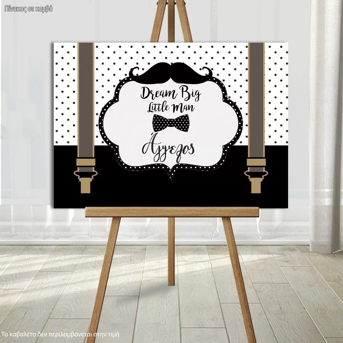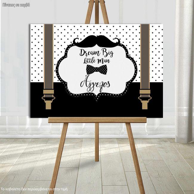Πίνακας σε καμβά Dream big little man, Μουστάκι παπιγιόν και τιράντες
