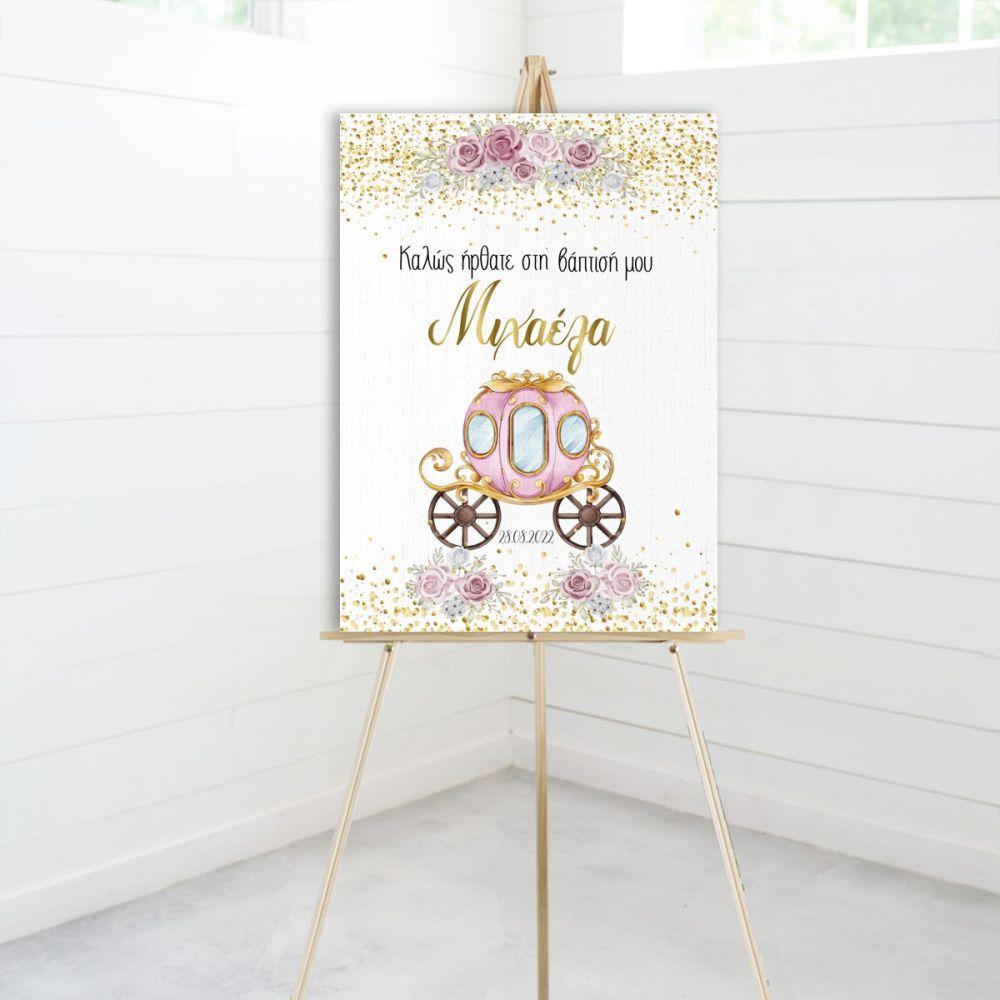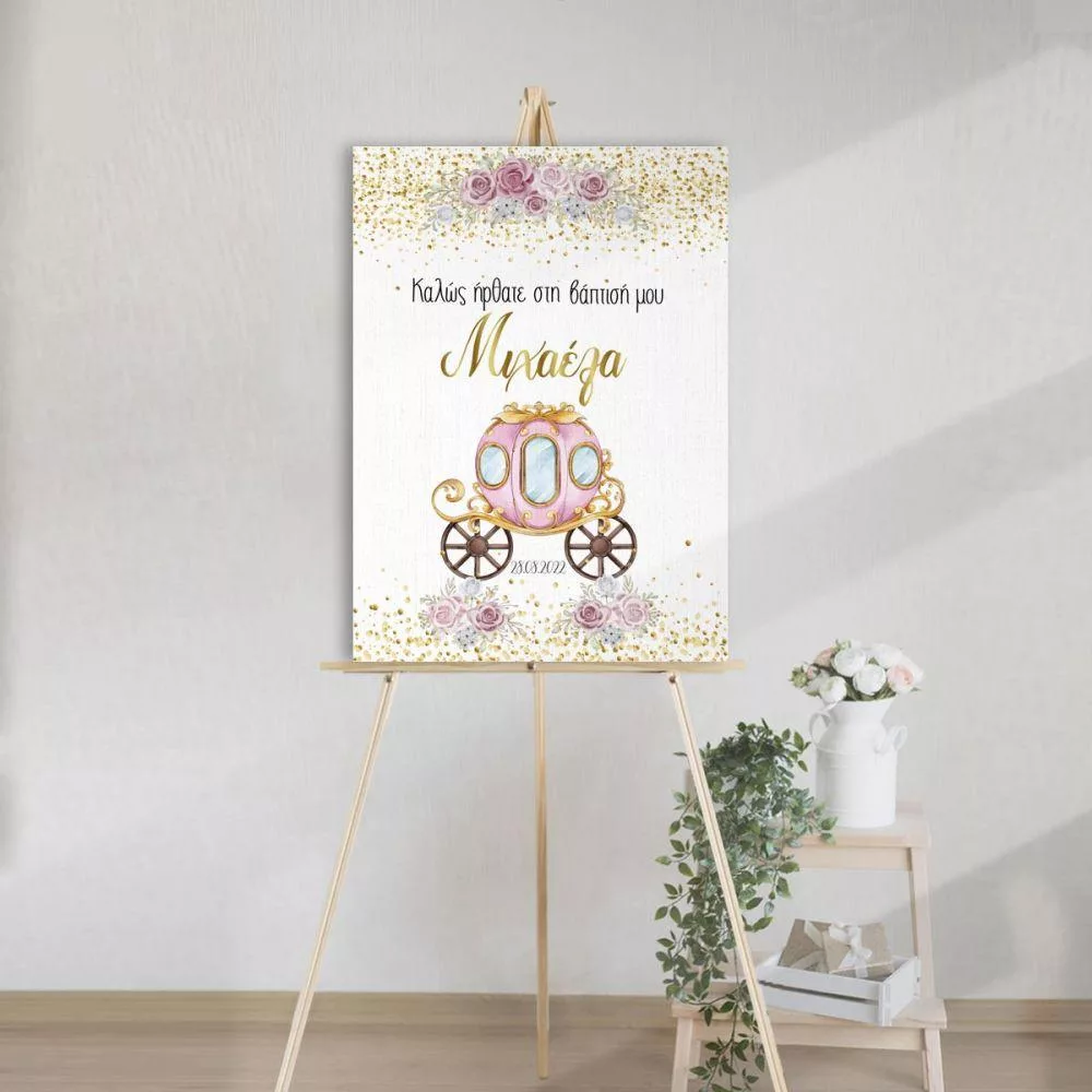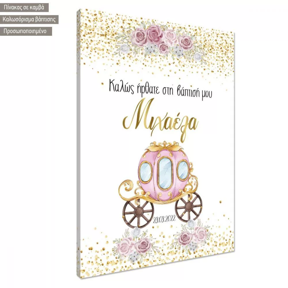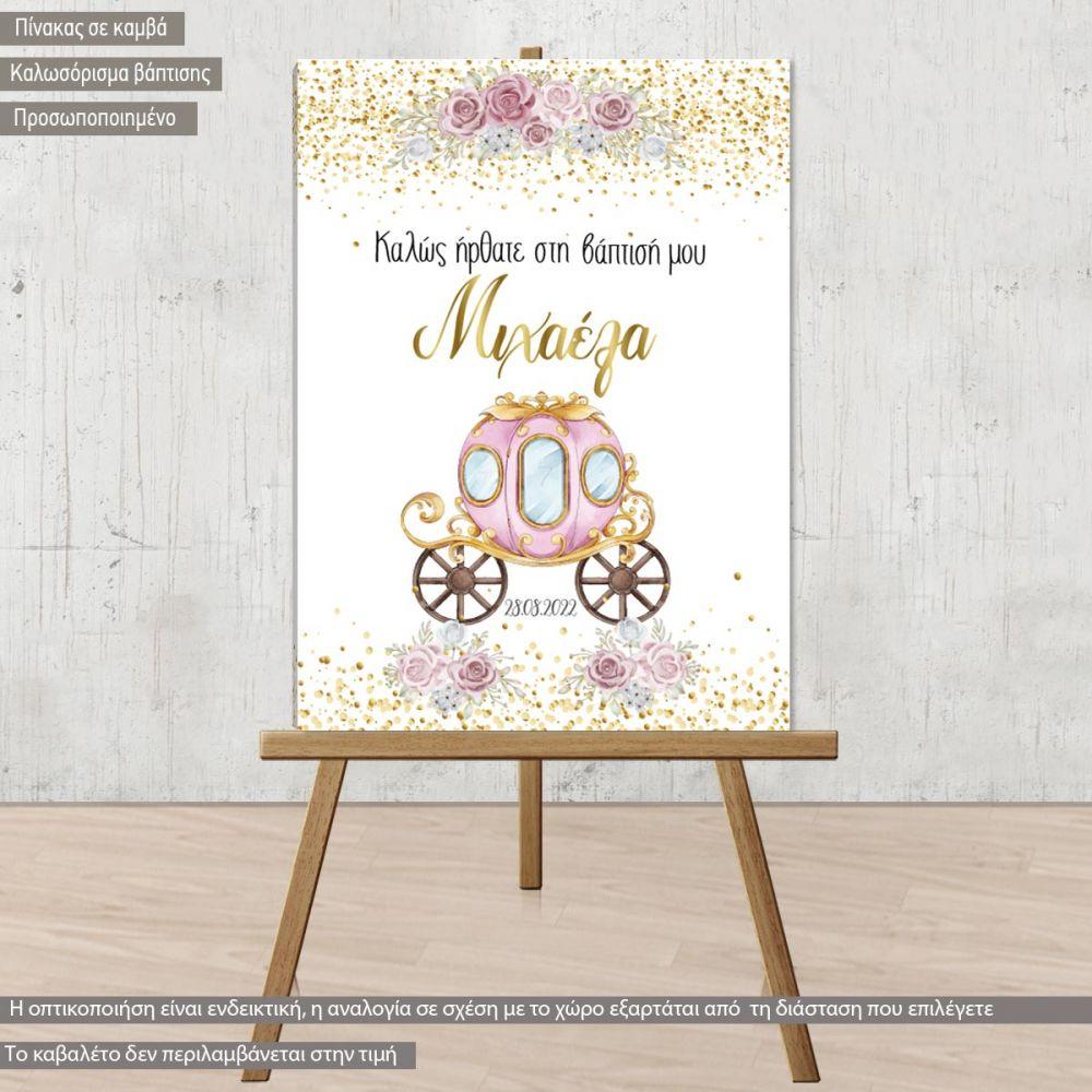 Πίνακας σε καμβά Καλώς ήρθατε στη βάπτιση μου, Άμαξα Σταχτοπούτας κολοκύθα