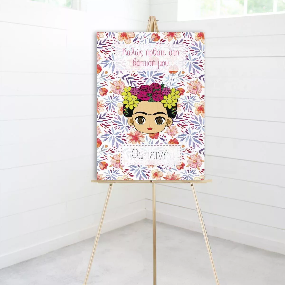 Πίνακας σε καμβά Καλώς ήρθατε στη βάπτιση μου, Cute floral Frida