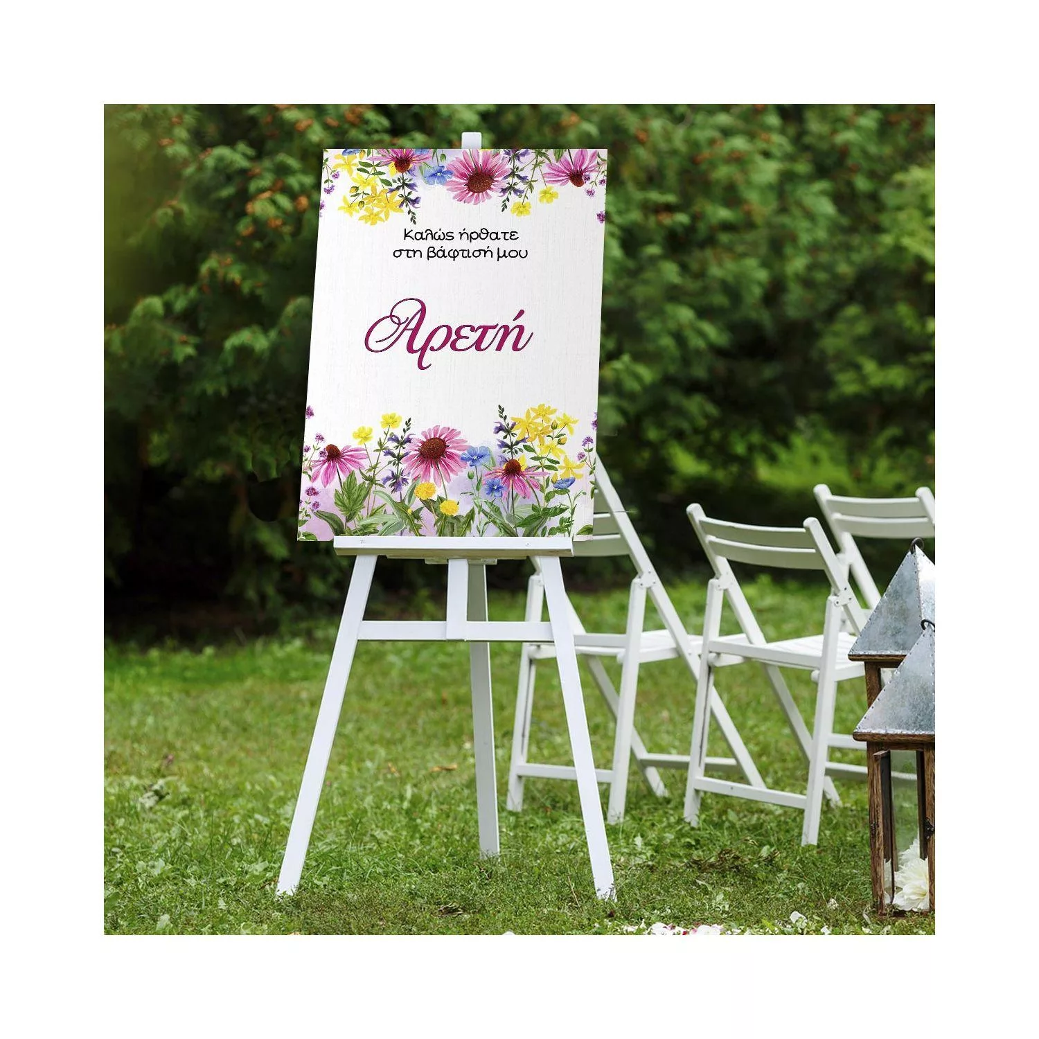 Πίνακας σε καμβά Καλώς ήρθατε στη βάπτιση μου, καλοκαιρινά ζωγραφιστά λουλούδια