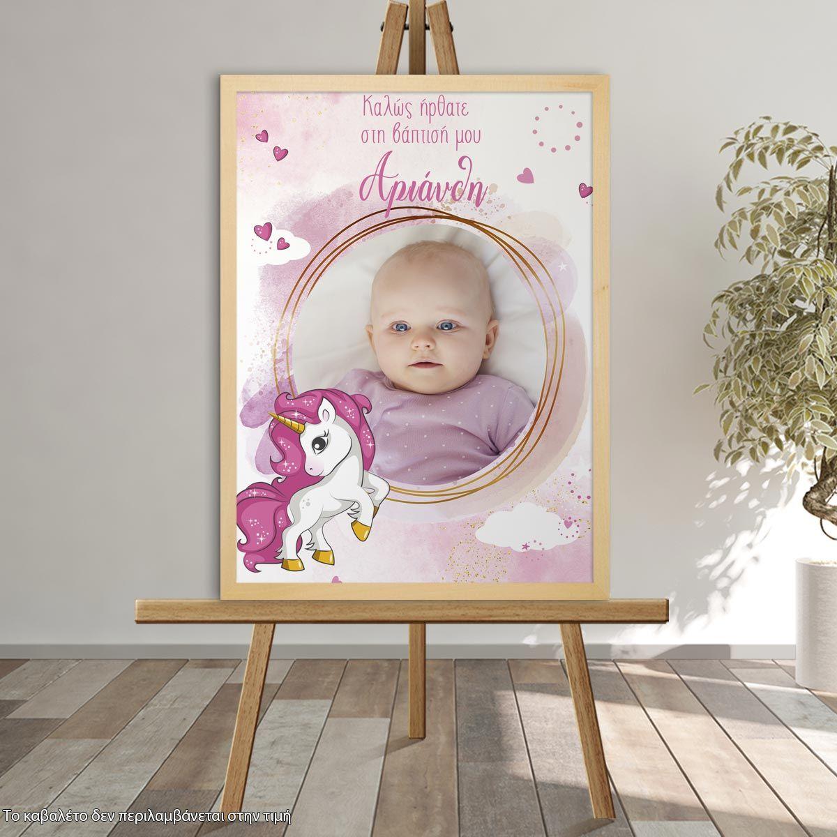 Πίνακας σε καμβά Καλώς ήρθατε στη βάπτιση μου, Μονόκερος με φωτογραφία