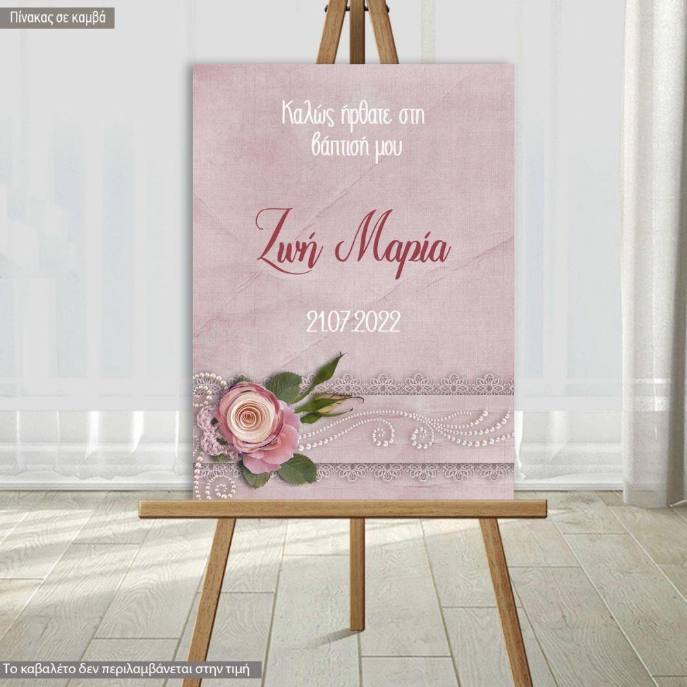 Πίνακας σε καμβά Καλώς ήρθατε στη βάπτιση μου, Τριαντάφυλλο και πέρλες