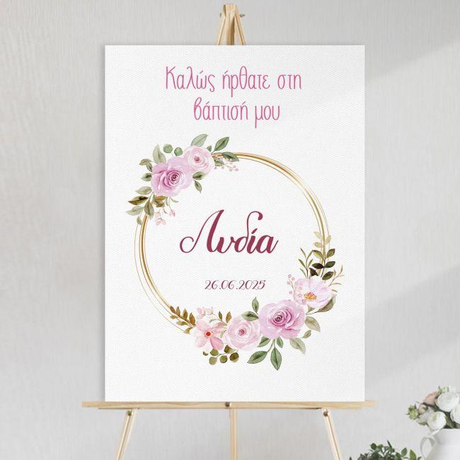 Πίνακας σε καμβά Καλώς ήρθατε στη βάπτιση μου, Χρυσοί κύκλοι με λουλούδια